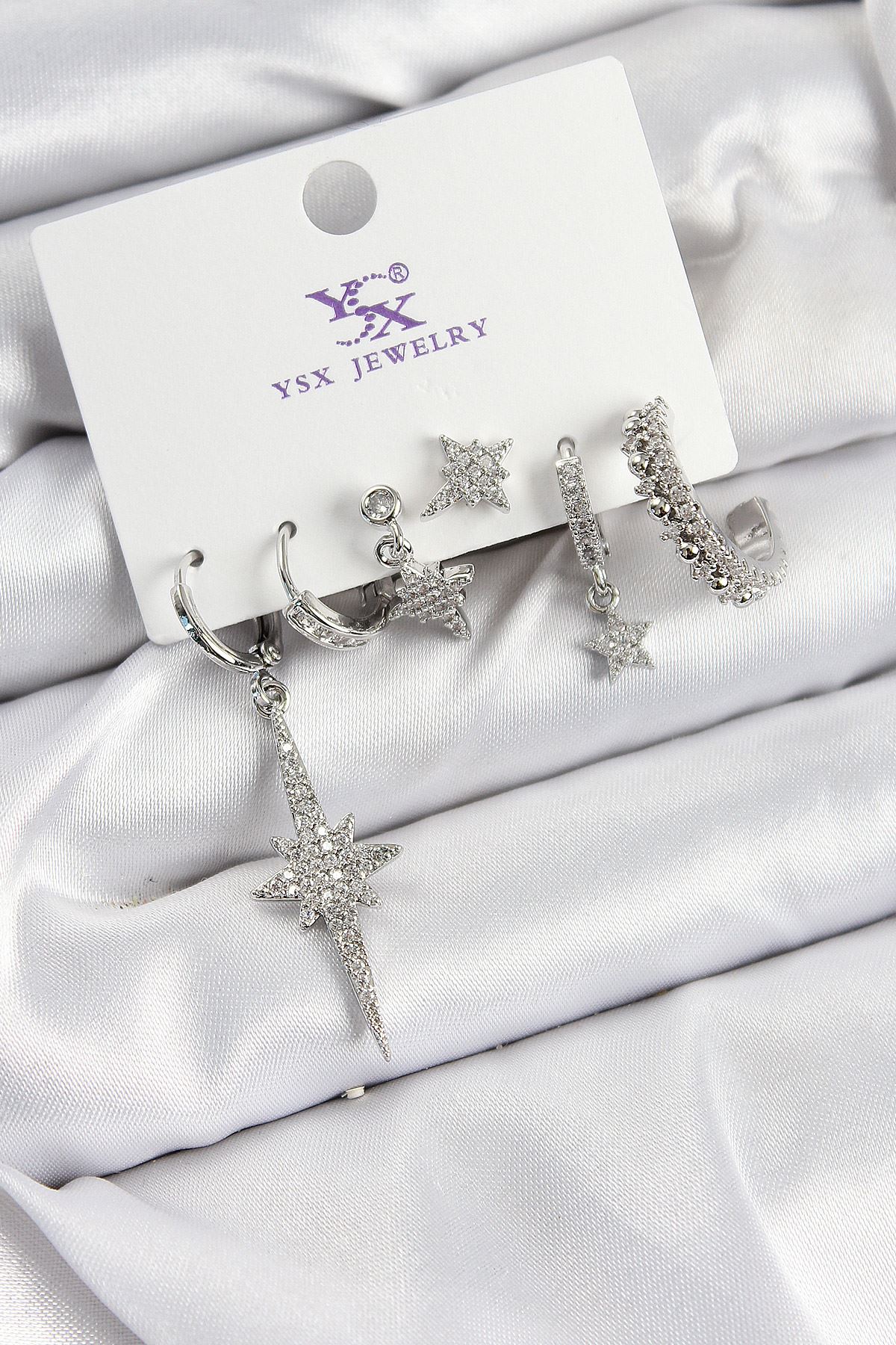 Pirinç Zİrkon Taşlı Kutup Yıldızı Model Gümüş Renk 3'lü Çift Kadın Küpe - TJ-BKP10950