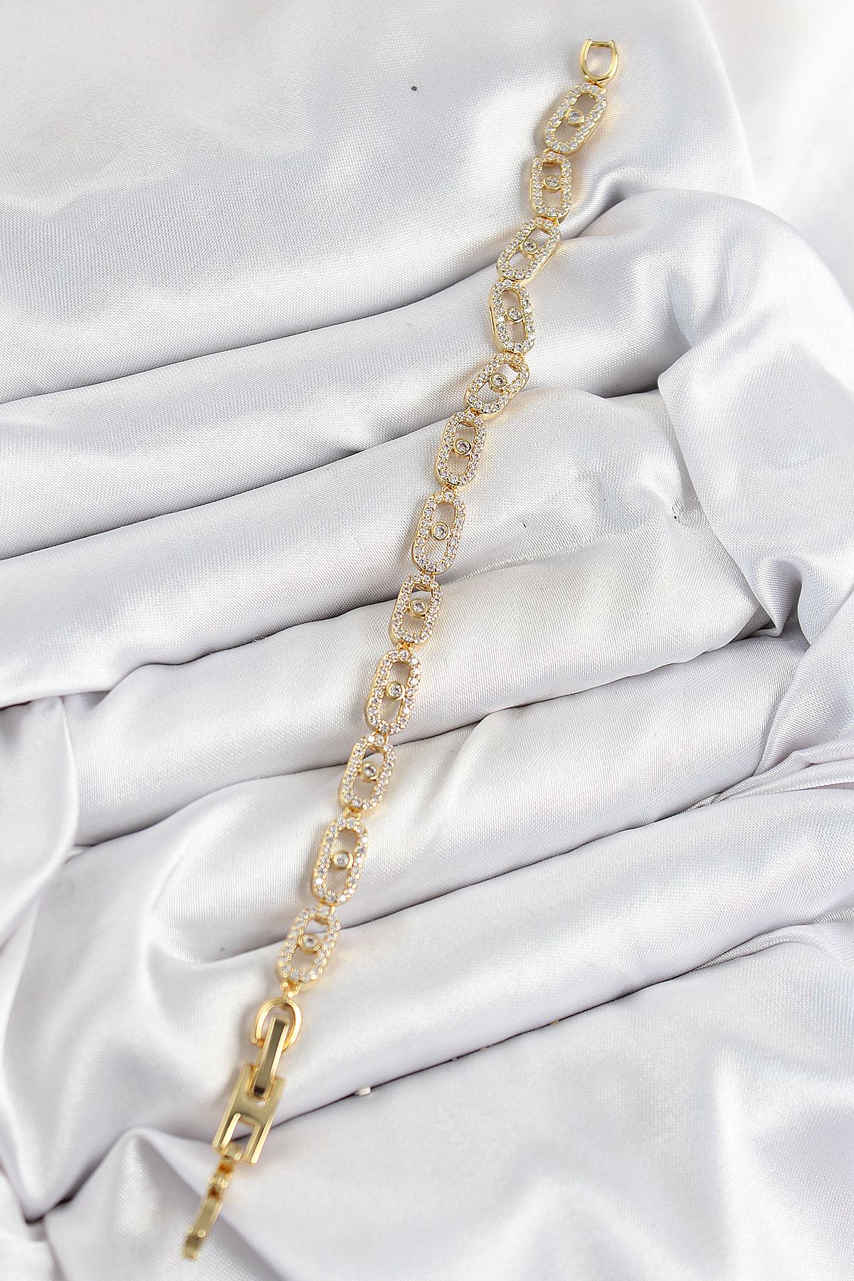 Pirinç Zirkon Taşlı Messika Model Gold Renk VIP Seri Kadın Bileklik - TJ-BB7517
