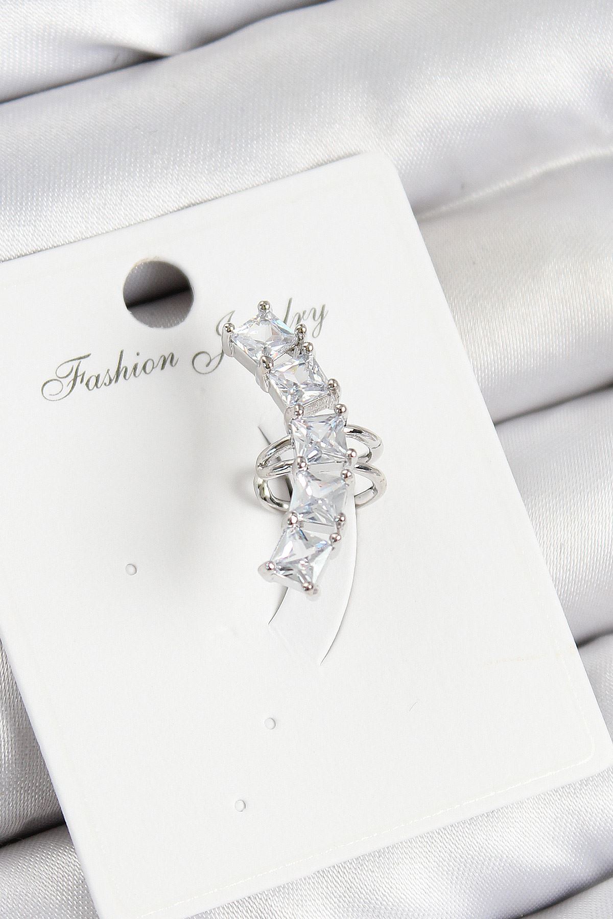 Pirinç Zirkon Taşlı Model Gümüş Renk Sağ Kıkırdak Küpe - TJ-BKP10999