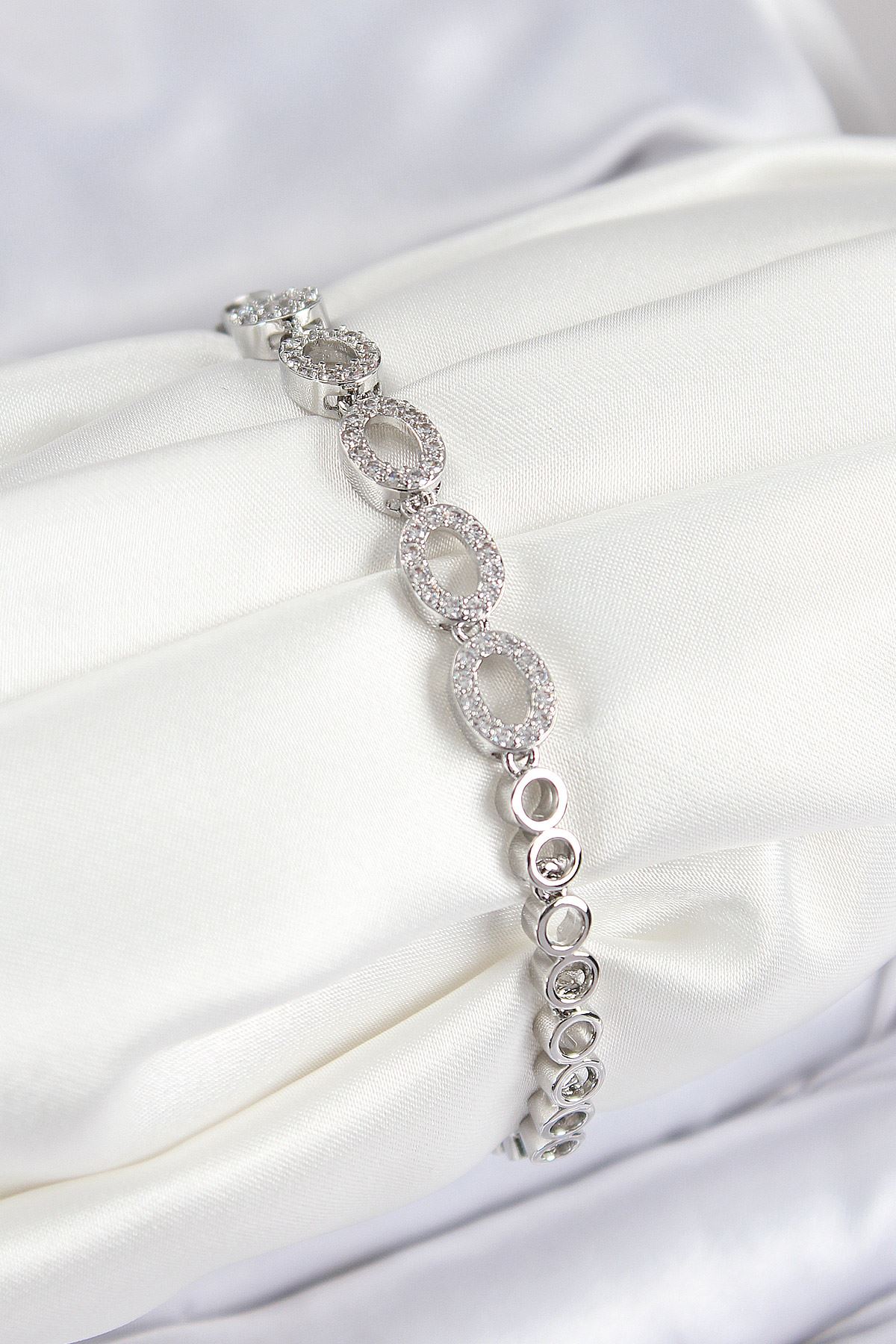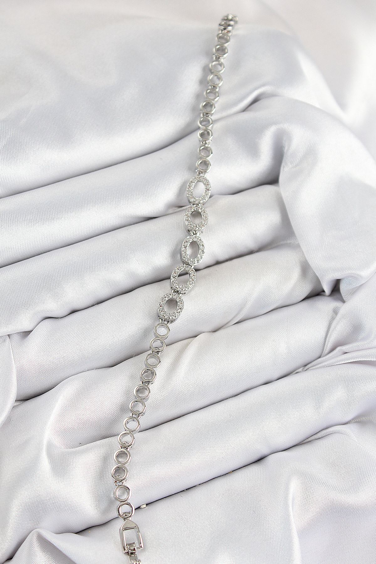 Pirinç Zirkon Taşlı Oval Model Gümüş Renk Kadın Bileklik - TJ-BB7544