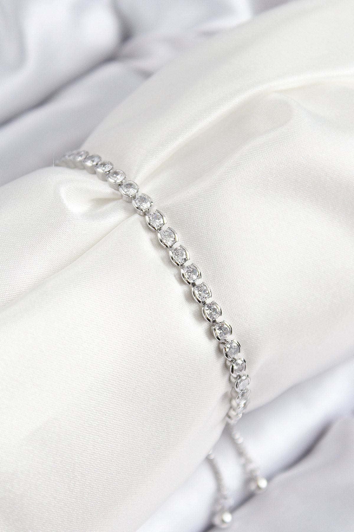 Pirinç Zirkon Taşlı Sıralı Model Gümüş Renk Asansörlü Kadın Bileklik - TJ-BB7726