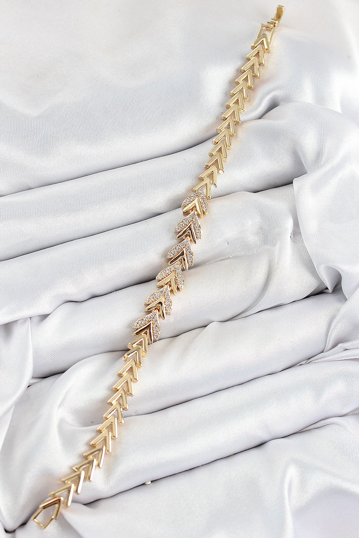Pirinç Zirkon Taşlı Sıralı Ok Model Gold Renk Kadın Bileklik - TJ-BB7525