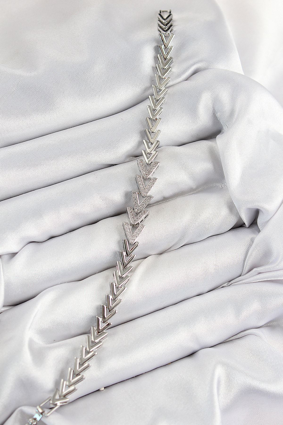 Pirinç Zirkon Taşlı Sıralı Ok Model Gümüş Renk Kadın Bileklik - TJ-BB7560