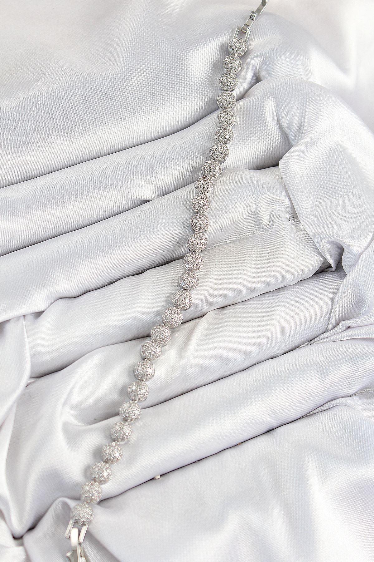 Pirinç Zirkon Taşlı Yarım Topcuk Model Gümüş Renk VIP Seri Kadın Bileklik - TJ-BB7507