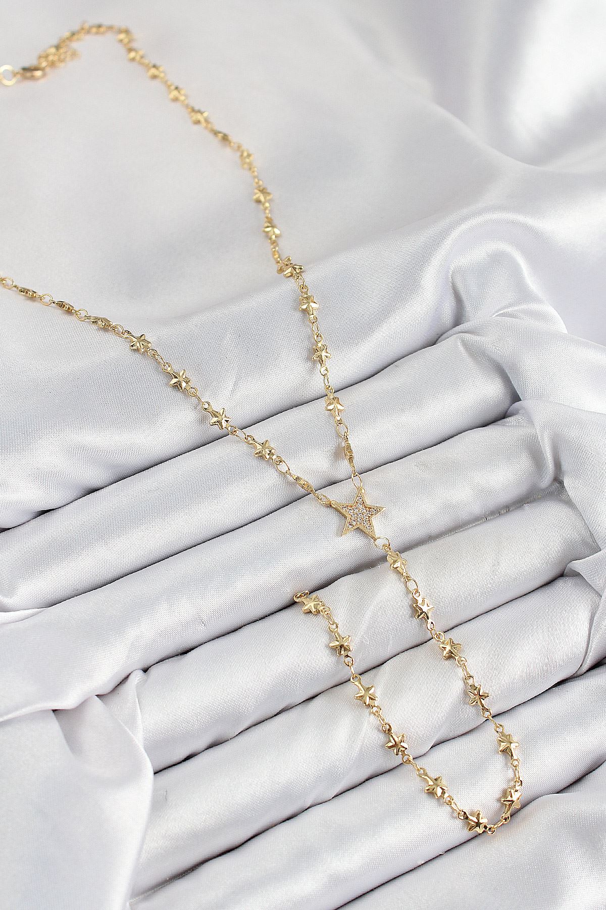 Pirinç Zirkon Taşlı Yıldız Model Gold Renk Y Kolye - TJ-BKO10459
