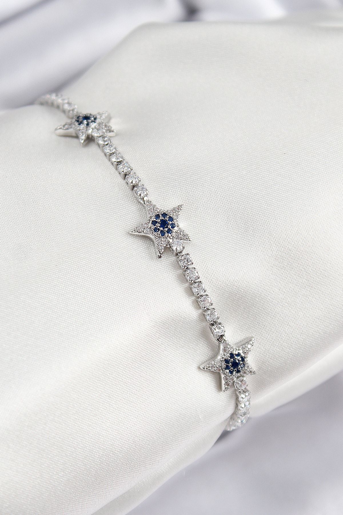 Pirinç Zirkon Taşlı Yıldız Model Gümüş Renk Kadın Bileklik - TJ-BB7700