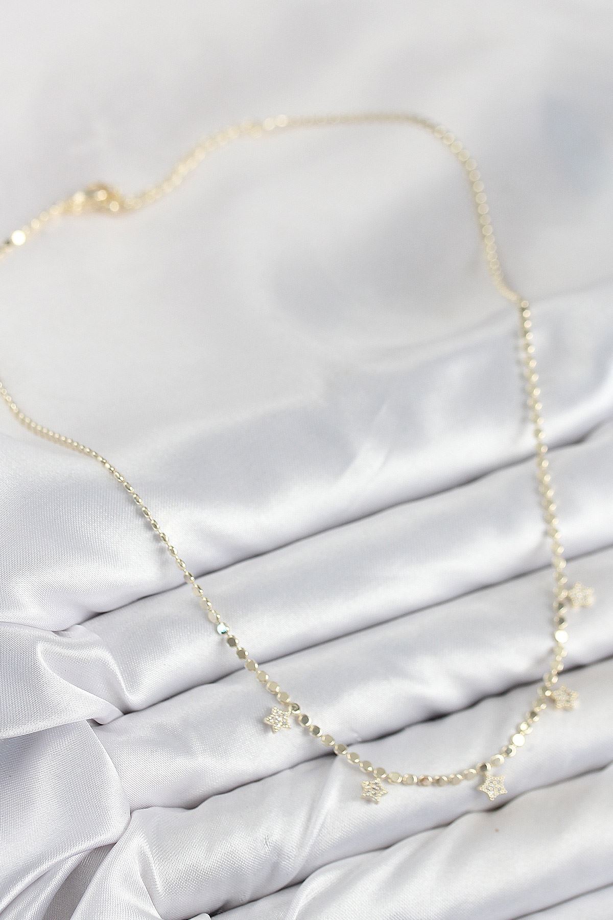 Pirinç Zirkon Taşlı Yıldızlı Ezme Zincir Model Gold Renk Kadın Kolye - TJ-BKO10491