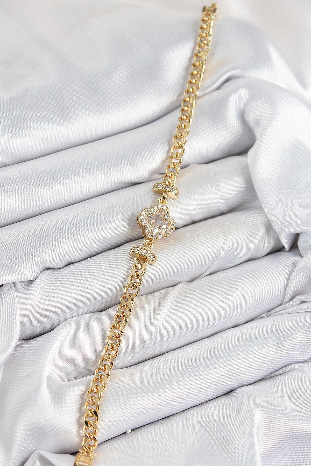 Pirinç Zirkon Taşlı Yonca Model Gold Renk Kadın Bileklik - TJ-BB7537