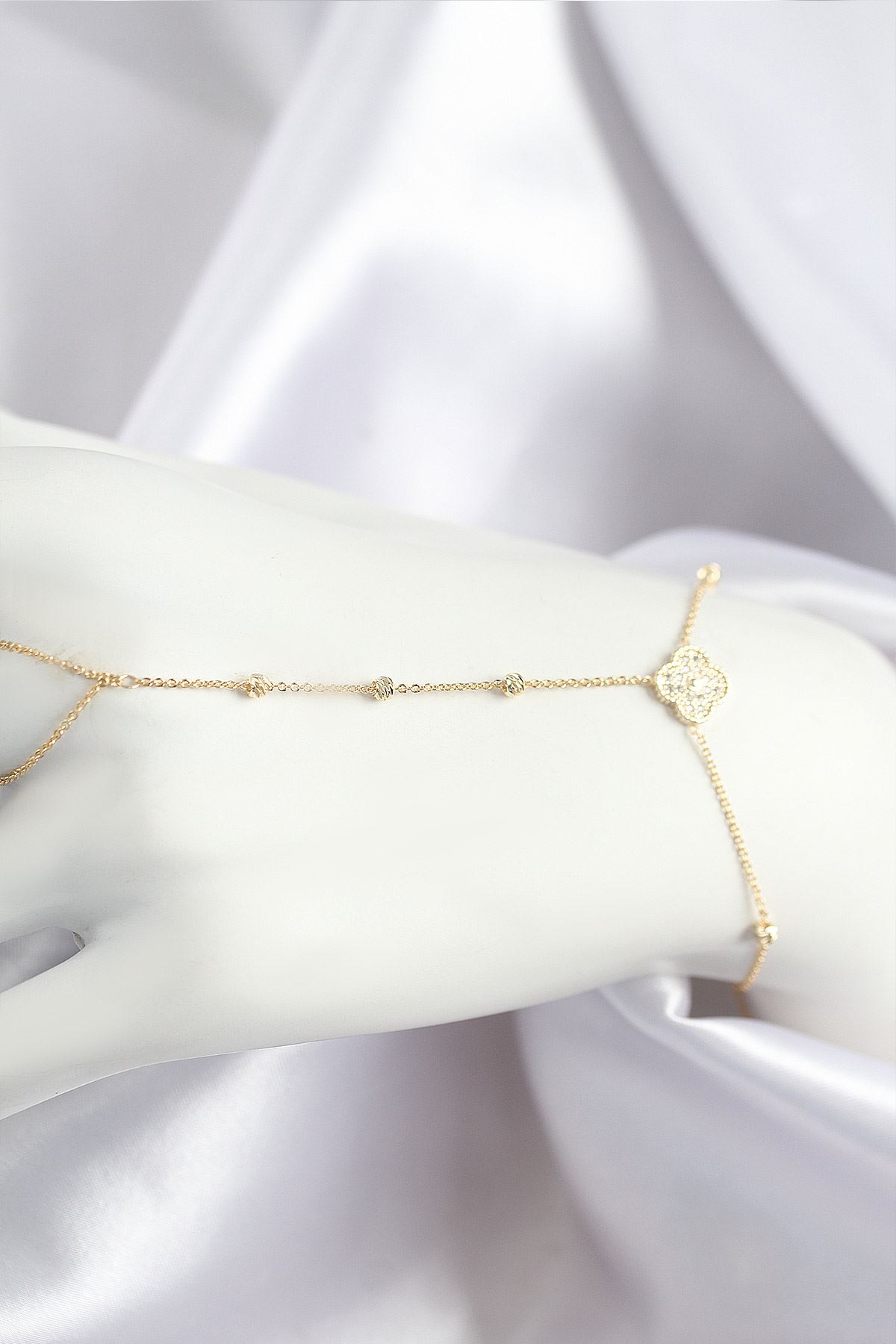 VIP Pirinç Zirkon Taşlı Parçalı Zincir Model Gold Renk Kadın Bileklik - TJ-BB7767