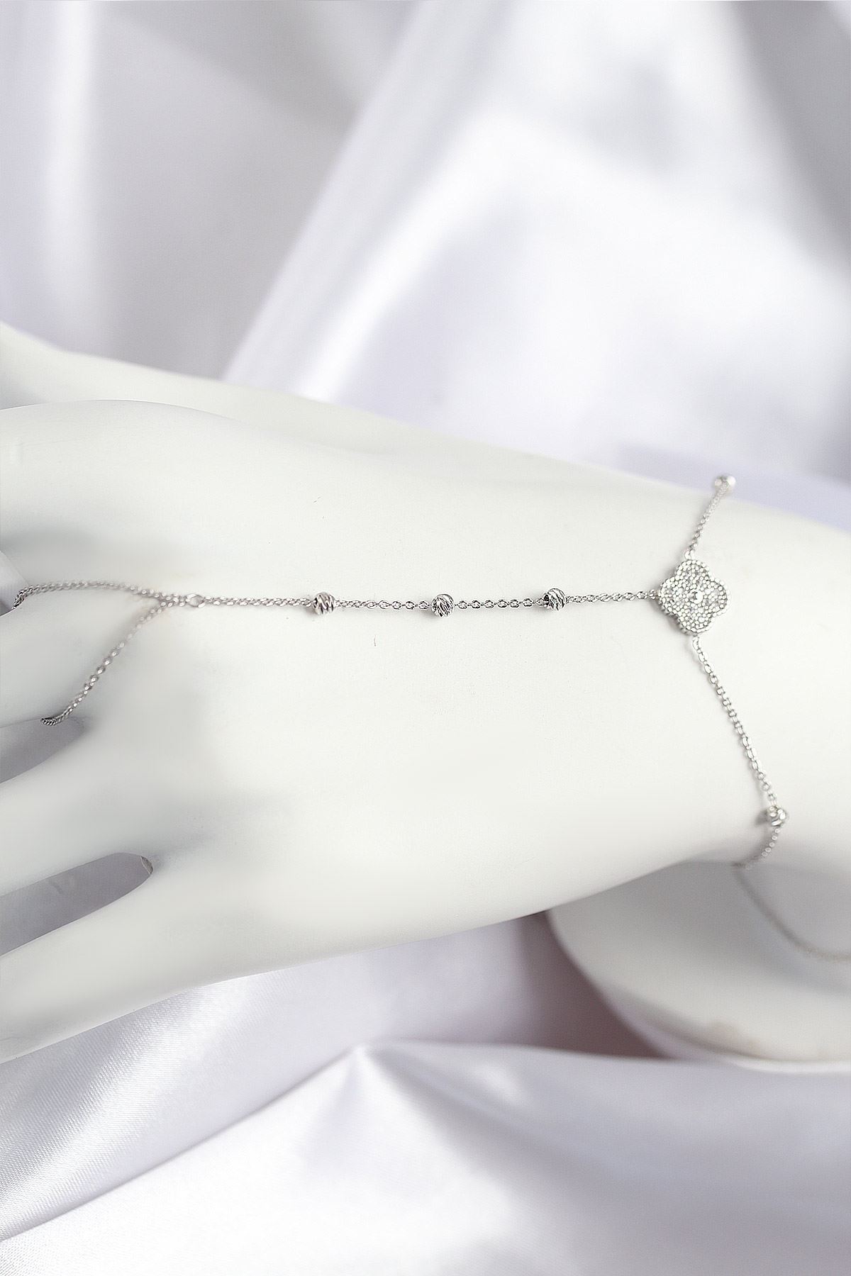 Pirinç Zirkon Taşlı Yonca Model Gümüş Renk Şahmeran - TJ-SN718