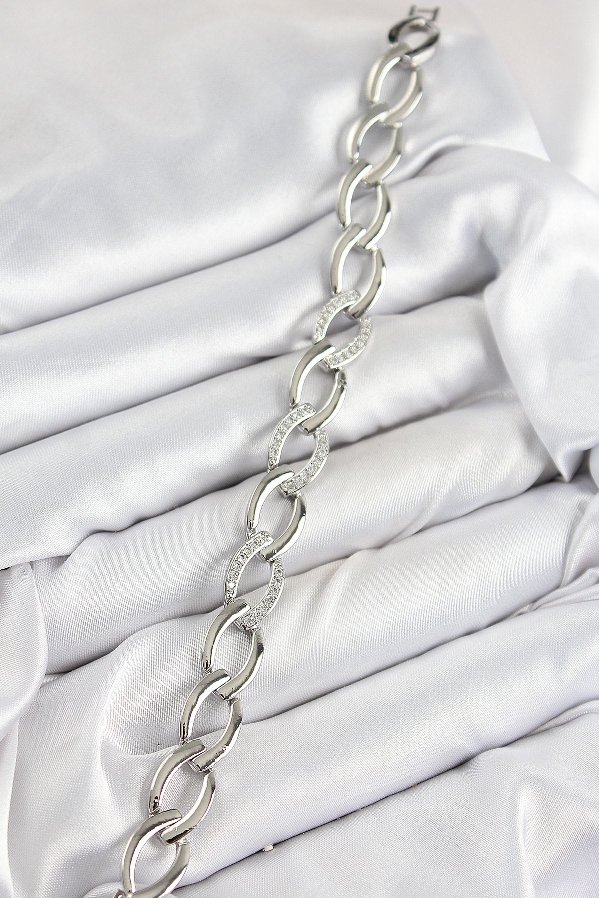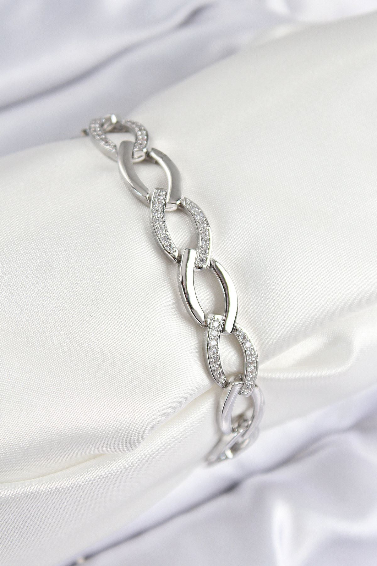 Pirinç Zirkon Taşlı Zincir Model Gümüş Renk Kadın Bileklik - TJ-BB7554