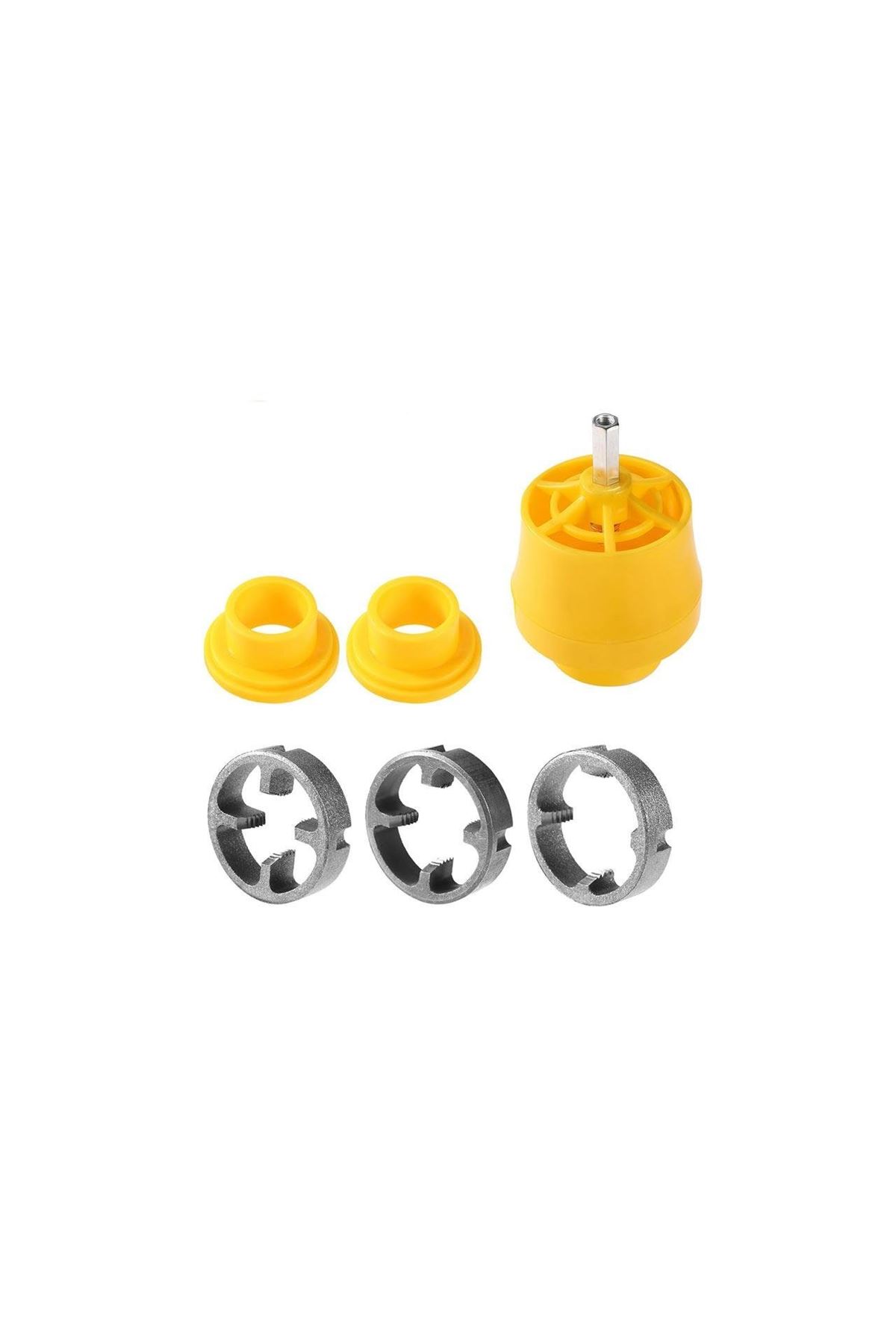 1", 3/4" ve 1/2" PVC boruların diş açılması için 3 kalıp içerir.