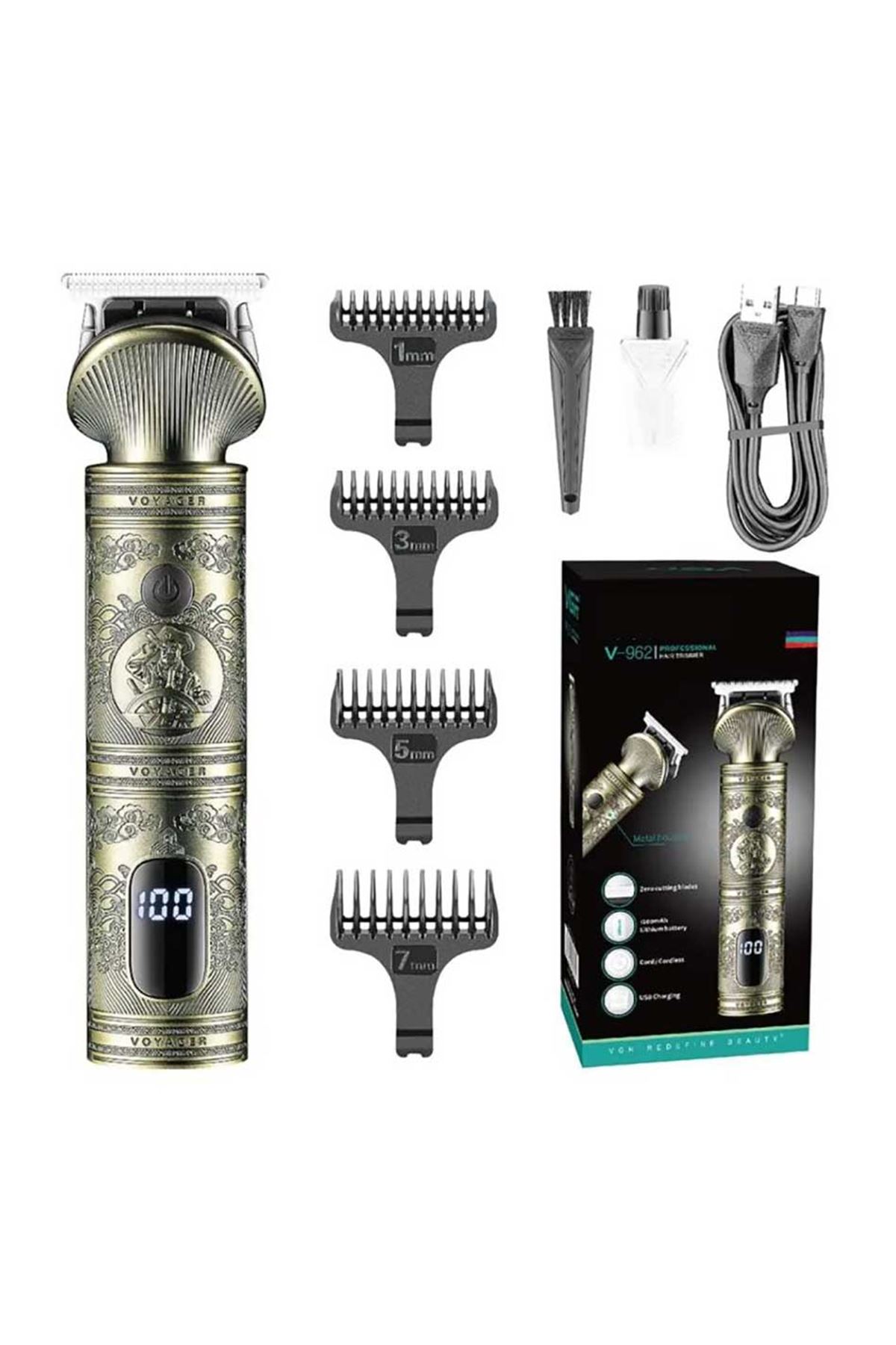 Pil Türü : 1200mAhmAh Lityum PilÇalışma Süresi : 200 DakikaŞarj Süresi : 1,5 SaatPaket İçeriği1 Adet Profesyonel Saç Kesme Makinesi V-9624 Adet Kesim Tarağı1 Adet Yağdanlık1 Adet Fırça1 Adet Usb Kablo