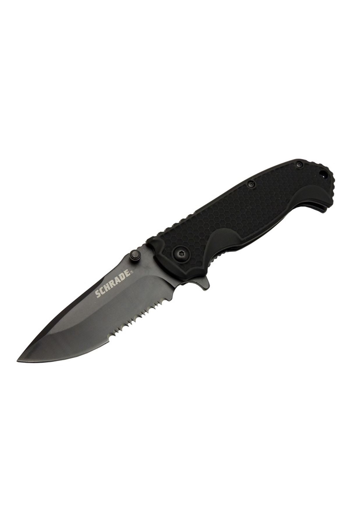 Schrade 5-1 Siyah Kamp Çakısı, hem işlevselliği hem de şık tasarımıyla öne çıkan bir üründür. Yarı otomatik açma mekanizması, testere detayı, dayanıklı malzemeleri ve ergonomik tasarımı sayesinde hem kamp hem de günlük yaşam için ideal bir seçenektir.