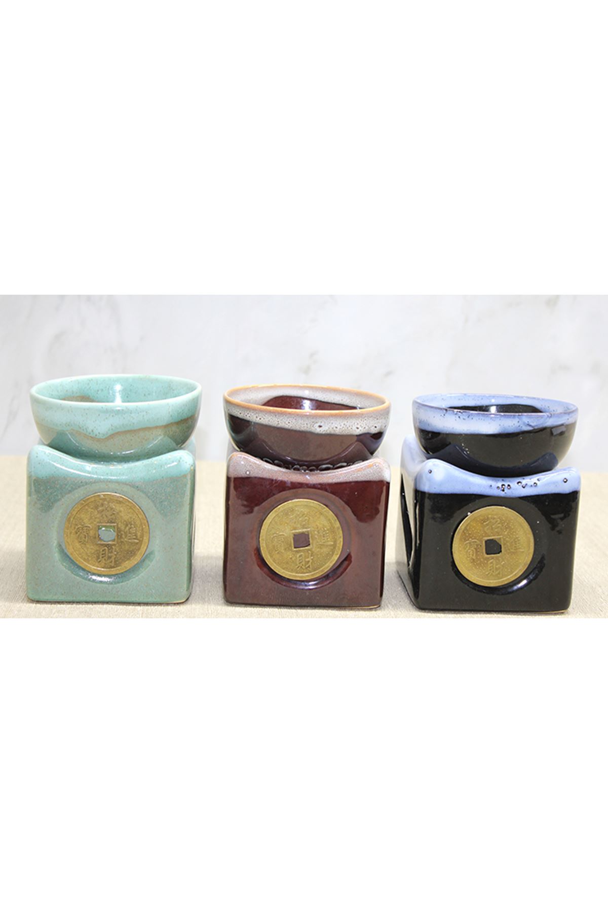 SERAMİK BUHURDANLIK Ürün Özellikleri Seramik Buhurdanlık, sade ve modern tasarımıyla uçucu yağlar, esanslar ve kokulu yağlar kullanılarak ortamda hoş bir aroma oluşturmak için ideal bir aromaterapi aksesuarıdır. 9x9 cm boyutundaki kompakt yapısı sayesinde evin her köşesinde, ofislerde, çalışma alanlarında ve meditasyon köşelerinde rahatlıkla kullanılabilir. Üst haznesine eklenen yağ veya esans, alt bölüme yerleştirilen tealight mumun sıcaklığıyla buharlaşarak bulunduğu ortama yumuşak ve kalıcı bir koku yayar. Isıya dayanıklı seramik malzemesi sayesinde güvenli ve uzun ömürlü bir kullanım sunarken, farklı renk alternatifleri dekoratif açıdan da zengin bir görünüm sağlar. Renk seçimi yapılamaz; görseldeki renklerden biri karışık olarak gönderilir. Hem aromaterapi deneyimi hem de dekoratif kullanım için ideal bir üründür. Paket İçeriği 1 adet Seramik Buhurdanlık