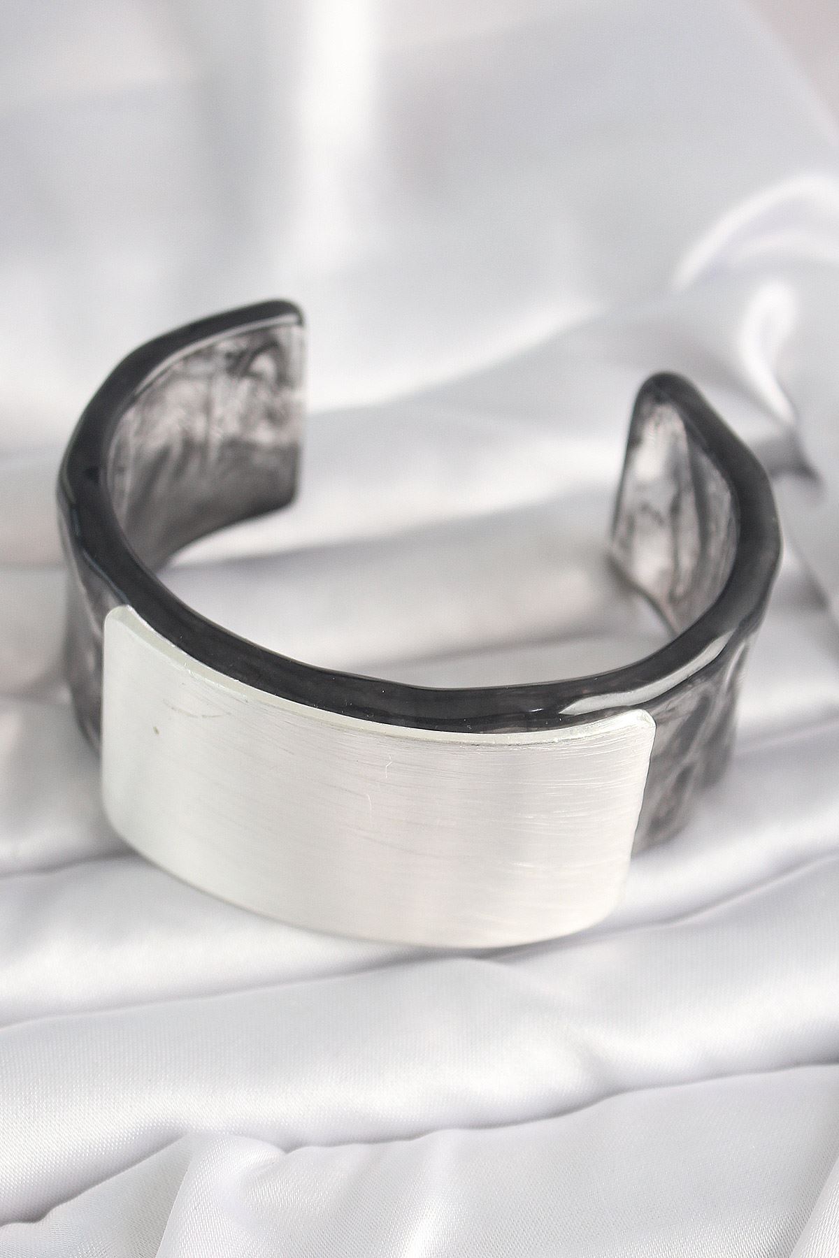 Siyah Mermer Desen Akrilik Plastik Dikdörtgen Plaka Model Vintage Kadın Bilezik - TJ-BB6675
