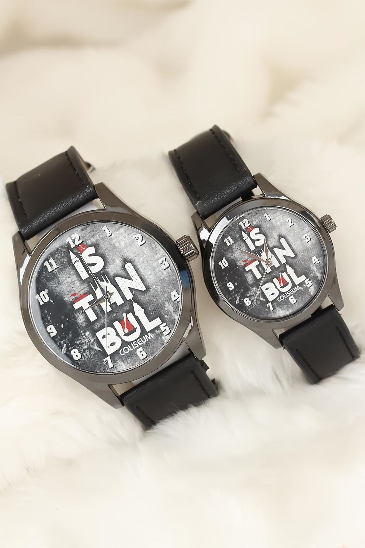 Siyah Renk Deri Kordonlu İstanbul Tasarımlı Sevgili Saatleri - TJ-SGK1369