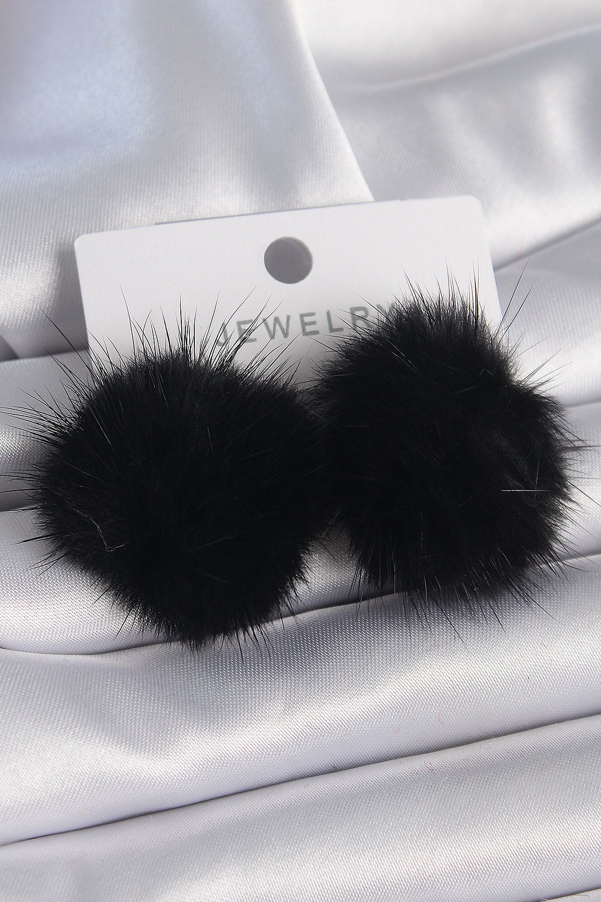 Siyah Renk Tüylü Ponpon Model Kadın Küpe - TJ-BKP9563