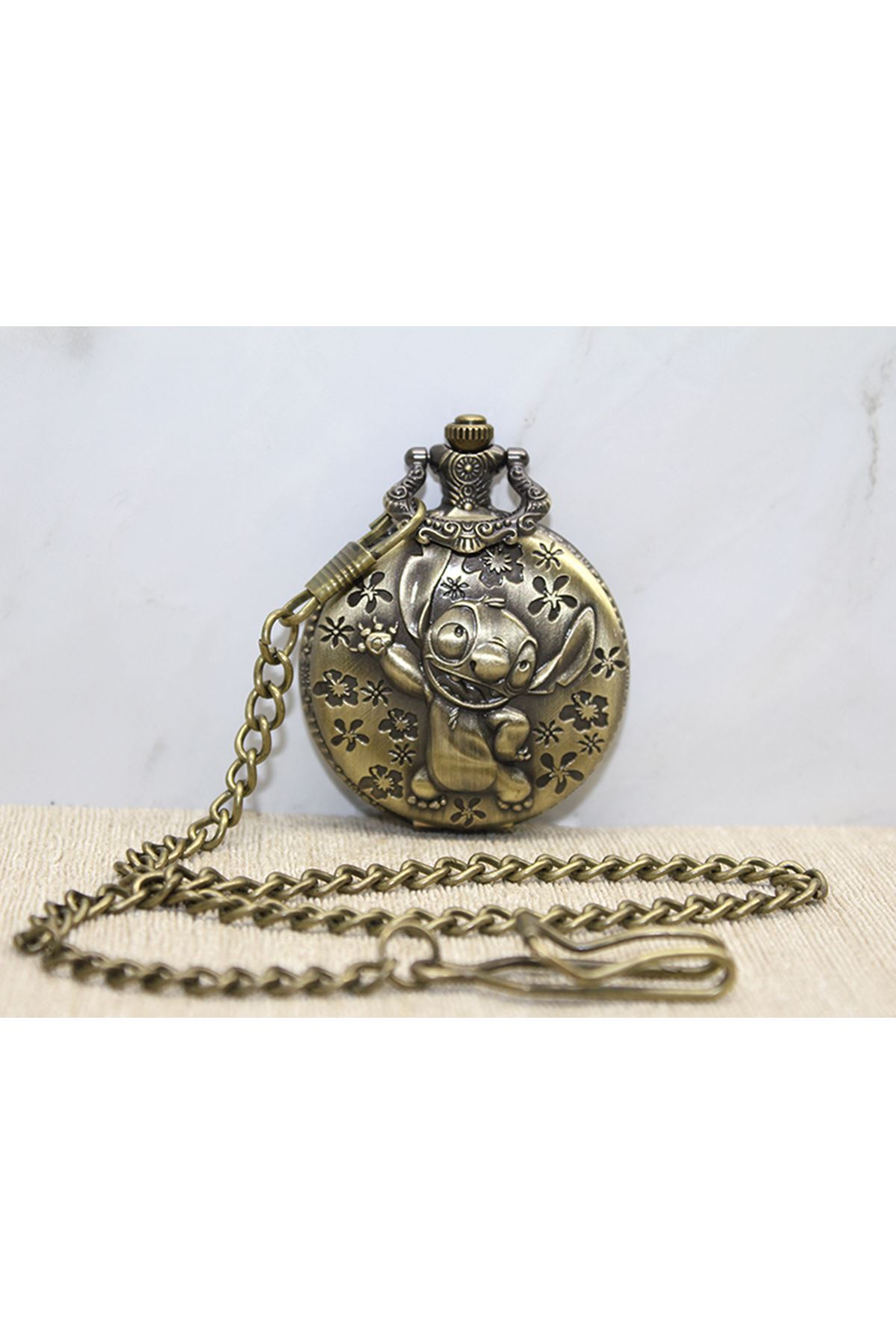 STITCH TASARIMLI KÖSTEKLİ SAATÜrün ÖzellikleriSevilen Stitch karakteri ile tasarlanmış bu köstekli saat, vintage bronz rengi ve zarif işçiliğiyle hem koleksiyon hem de günlük kullanım için idealdir. Saat kapağında detaylı Stitch figürü bulunmakta olup, iç kısmında klasik analog mekanizma yer almaktadır. Uzun zinciri sayesinde kolayca taşınabilir ve nostaljik bir aksesuar olarak kullanılabilir.Paket İçeriği1 Adet Stitch Karakter Baskılı Köstekli Saat