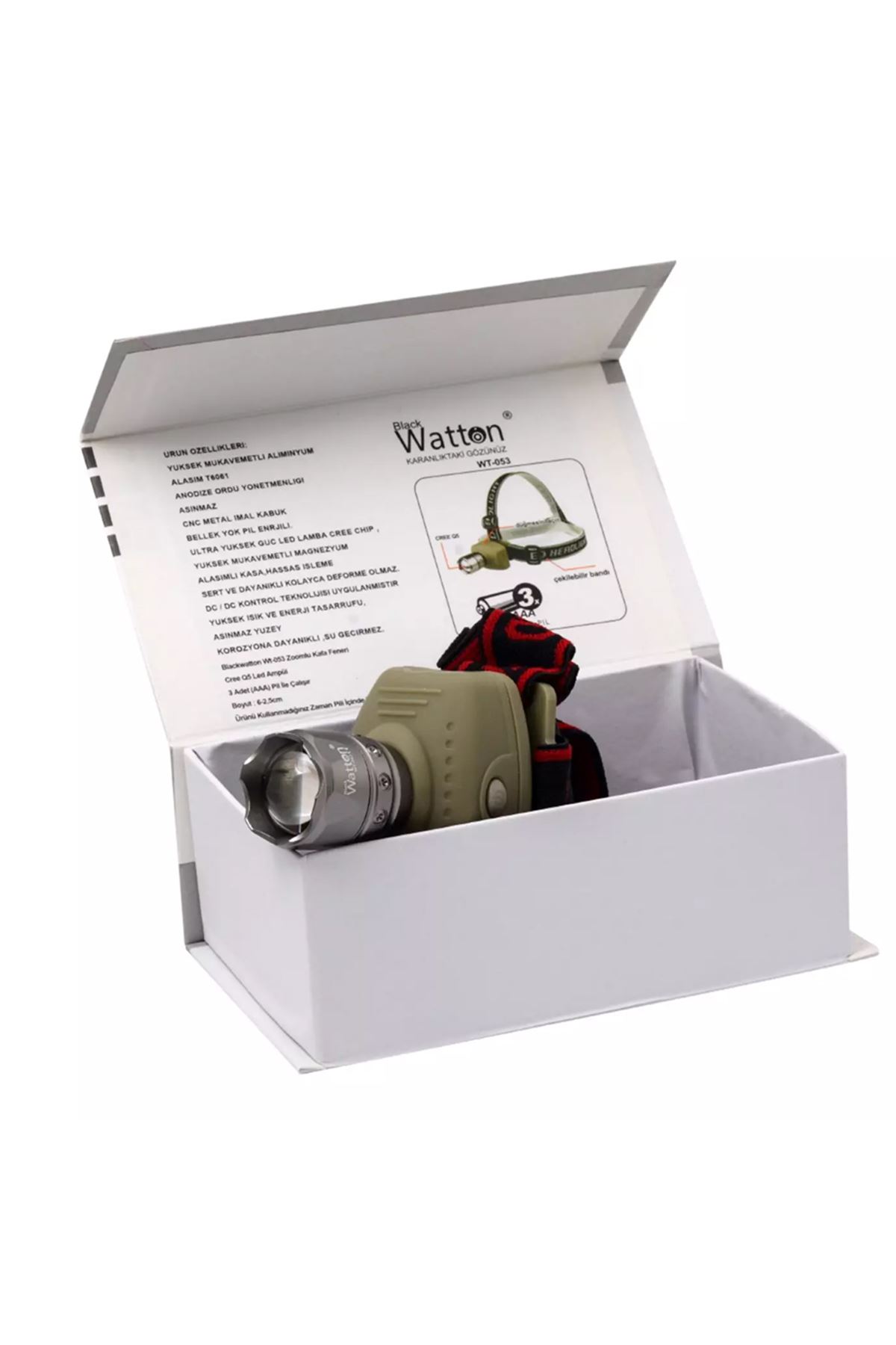 Boyutlar:Uzunluk 6 cm 2,5 cmIşık Özelliği :Cree Q5 130 Lümen,ZoomluIşık Mesafesi :250 mtIşık Rengi:BeyazÇalışma Süresi :9 SaatGövde Malzemesi:PlastikKullanım Şekli:Orta Yüksek Ve Selektör olmak üzere 3 Modda AydınlatmaKullanım Özellikleri :Esnek Lastiği ile Kolay Sabitlenebilme, Oynar BaşlıkTeknik Özellikleri :3 X AAA (1,5) Pille KullanımKutu İçeriği :ÜrünAmpül Ömrü :100.000 SaattirKullanım Yeri:Av, Kamp,Ev, Okul, Araba, Otel, RestorantTasarruflu Enerji Harcama ÖzelliğiÖnemli Uyarılar:Direk Göz İle Temas EttirmeyinizKullanmadığınız Süreçte İçinde Pil Bırakmayınız