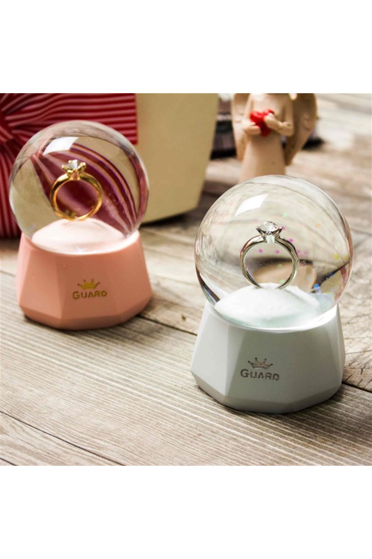 Ürün Özellikleri:Küre Kısmı Kaliteli Cam Malzemeden Üretilmiştir.Kürenin Alt Kısmı Polyester Malzemeden Üretilmiştir.Ters Çevirip Düzeltildiğinde Kar Taneleri Hareket Eder.Kar Küresinin Içinde Bulunan Tek Taş Yüzük Küreye Şık Bir Görünüm Vermektedir.Kar Küresi ışıklıdır.Kar Küresi Pillidir.(Piller Pakete Dahildir.)
