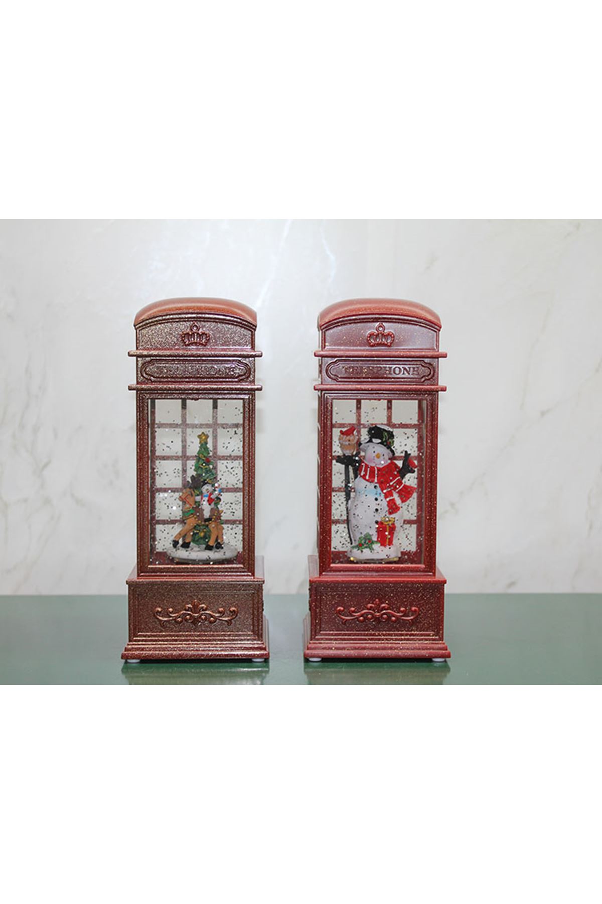 Telefon Kulübesi Tasarımlı Yılbaşı Temalı Işıklı Müzikli Kar Küresi Model 2