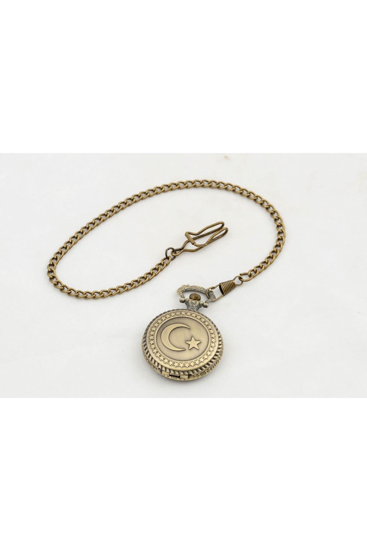 TÜRK BAYRAKLI KÖSTEKLİ SAATÜrün ÖzellikleriTürk bayraklı köstekli saat, nostaljik tasarımı ve detaylı işçiliği ile klasik saat severler için şık bir aksesuardır. Metal gövdeye sahip olup, kapağında ay ve yıldız motifi yer almaktadır. Zincirli yapısı sayesinde cepte taşınabilir ve özel günlerde kullanıma uygundur. Antik bronz renkli kaplama, saate vintage bir hava katar. Hem koleksiyonluk bir obje hem de anlamlı bir hediye alternatifi olarak tercih edilebilir.Paket İçeriği1 adet Türk Bayraklı Köstekli Saat