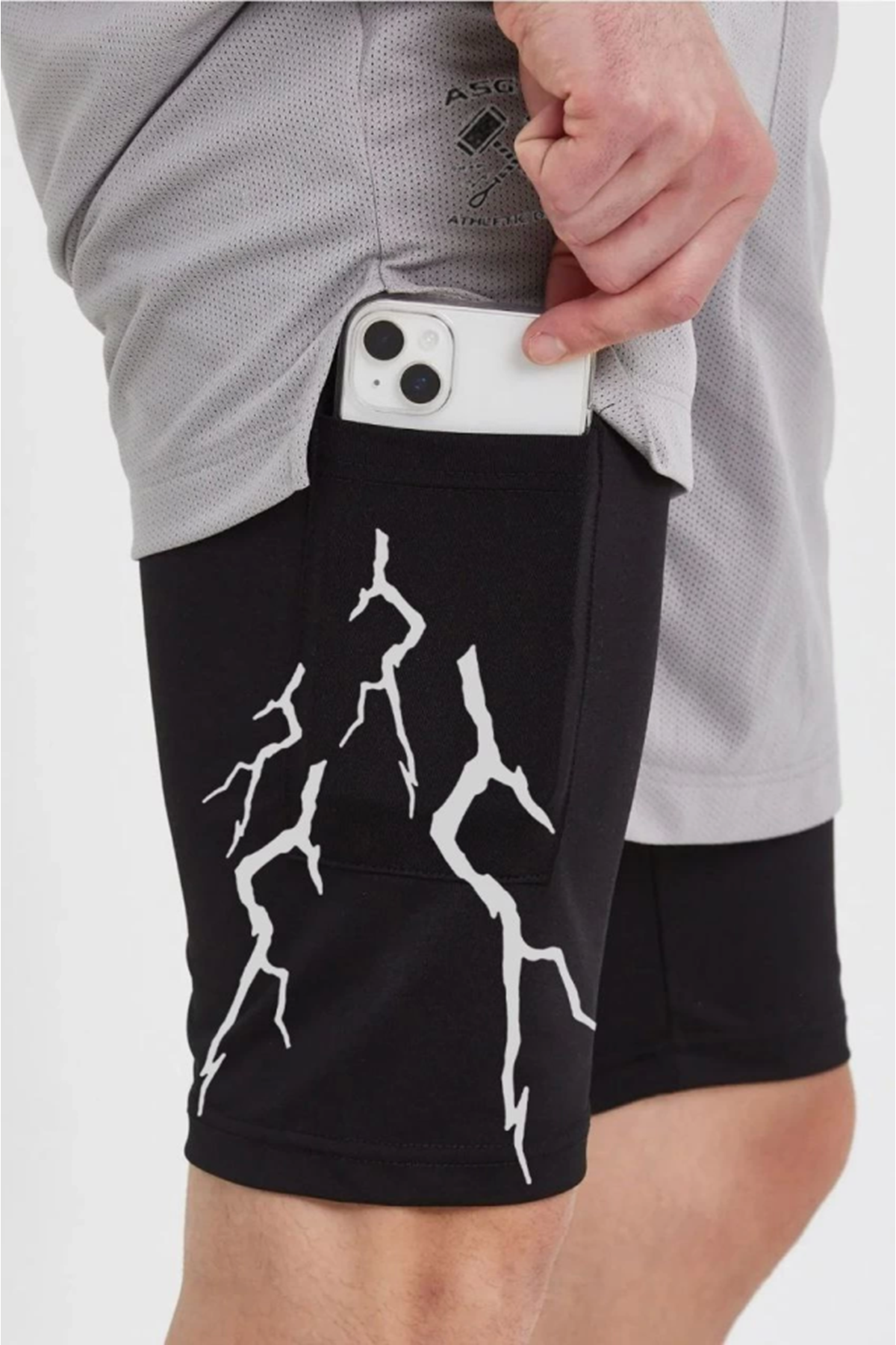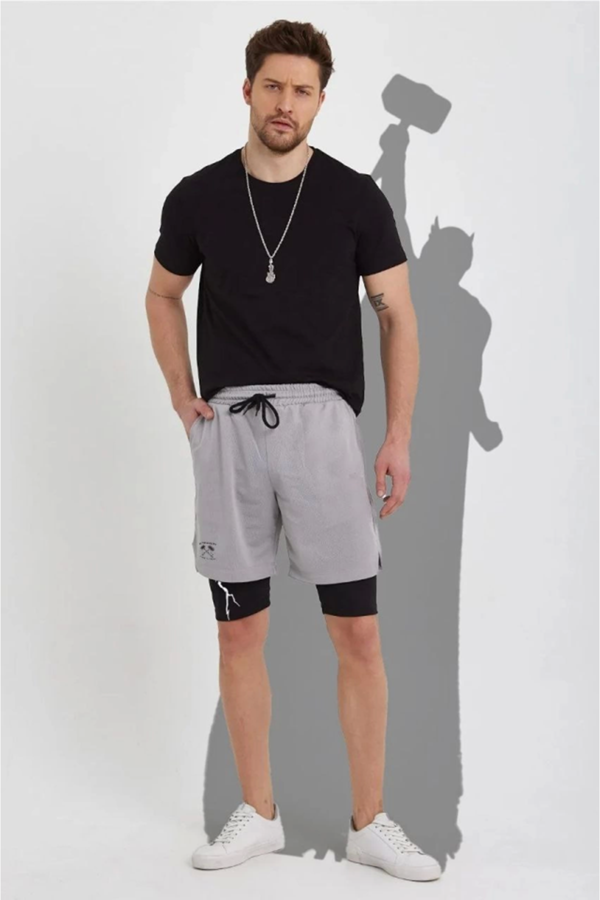 Unisex Baskılı İç Cepli Sporcu Alt Taytlı Şort - Gri
