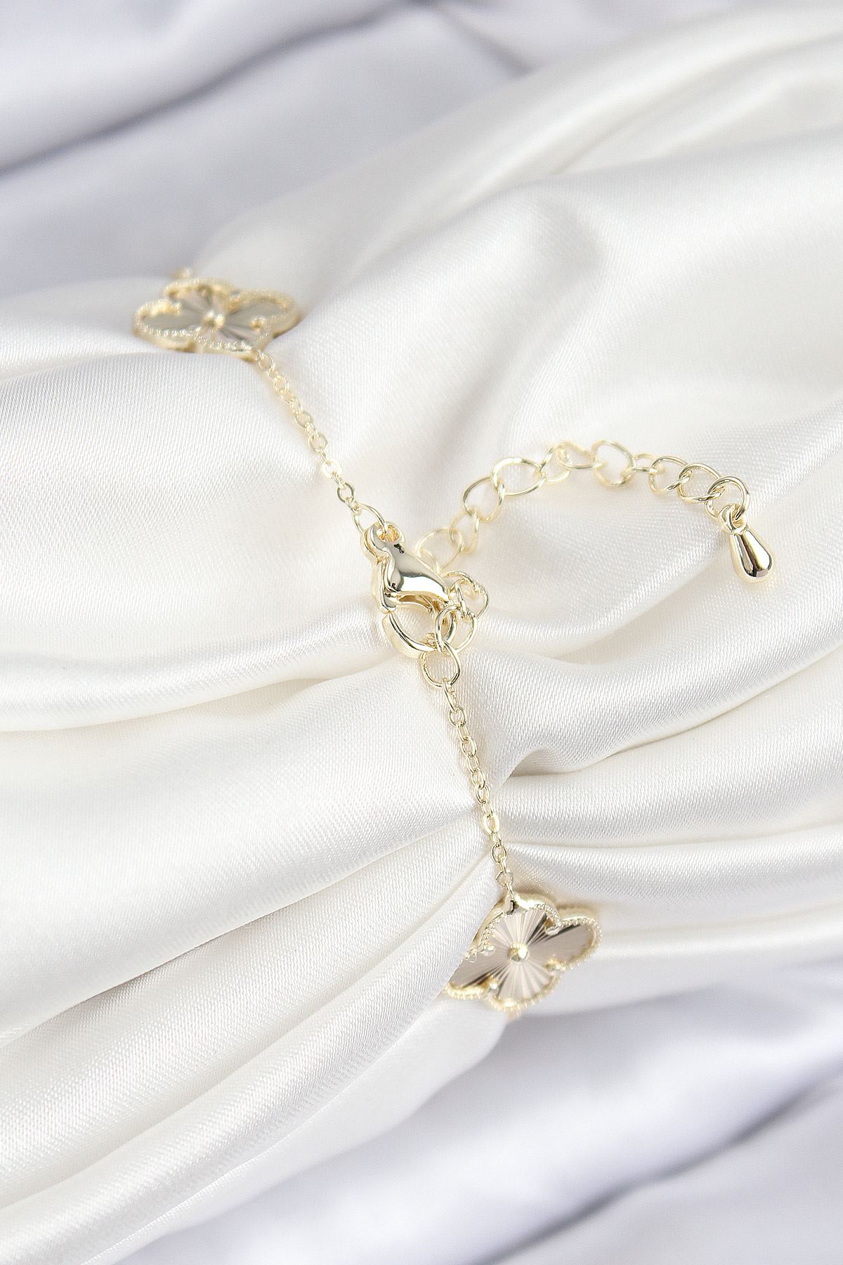 Pirinç Zirkon Taşlı Yonca Model Gold Renk Kadın Bileklik - TJ-BB7885
