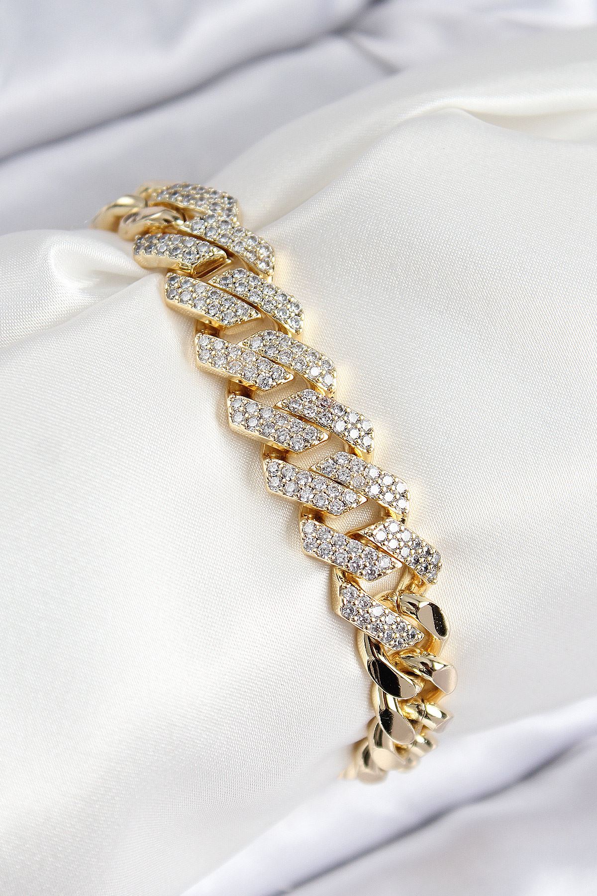 VIP Pirinç Zirkon Taşlı Cuba Model Gold Renk Kadın Bileklik - TJ-BB7765
