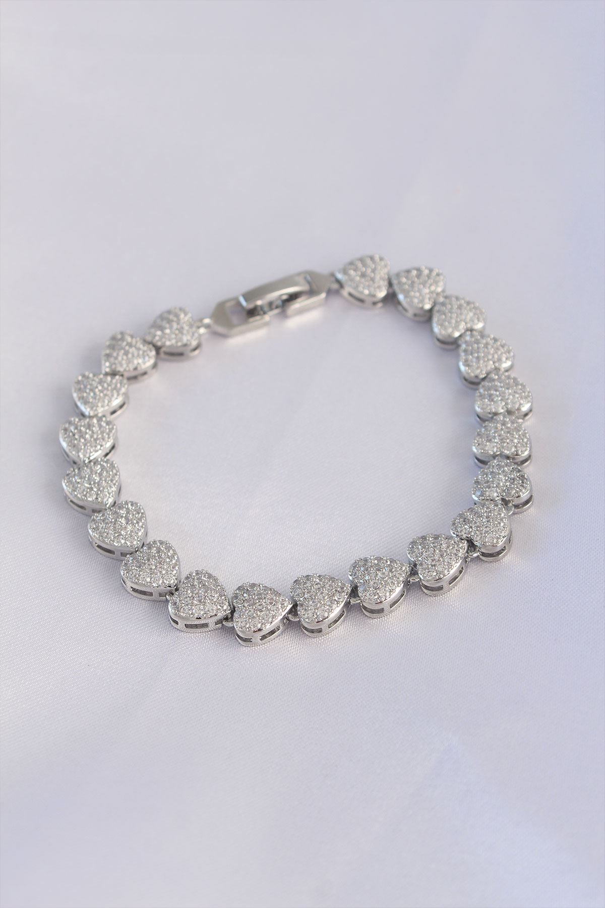 Vip Seri Pirinç Zirkon Taşlı Gümüş Renk Kalp Model Bileklik - TJ-BB6067