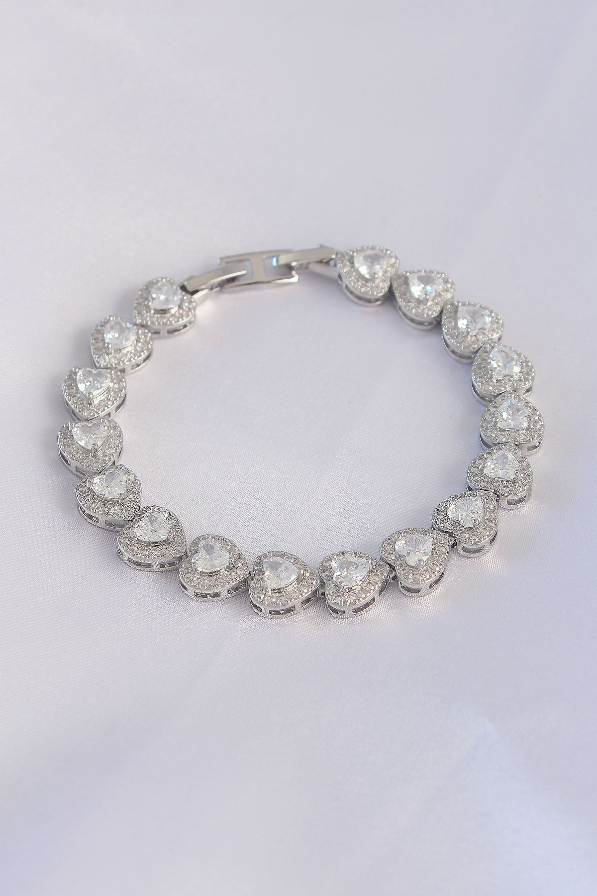 Vip Seri Pirinç Zirkon Taşlı Gümüş Renk Kalp Model Bileklik - TJ-BB6073