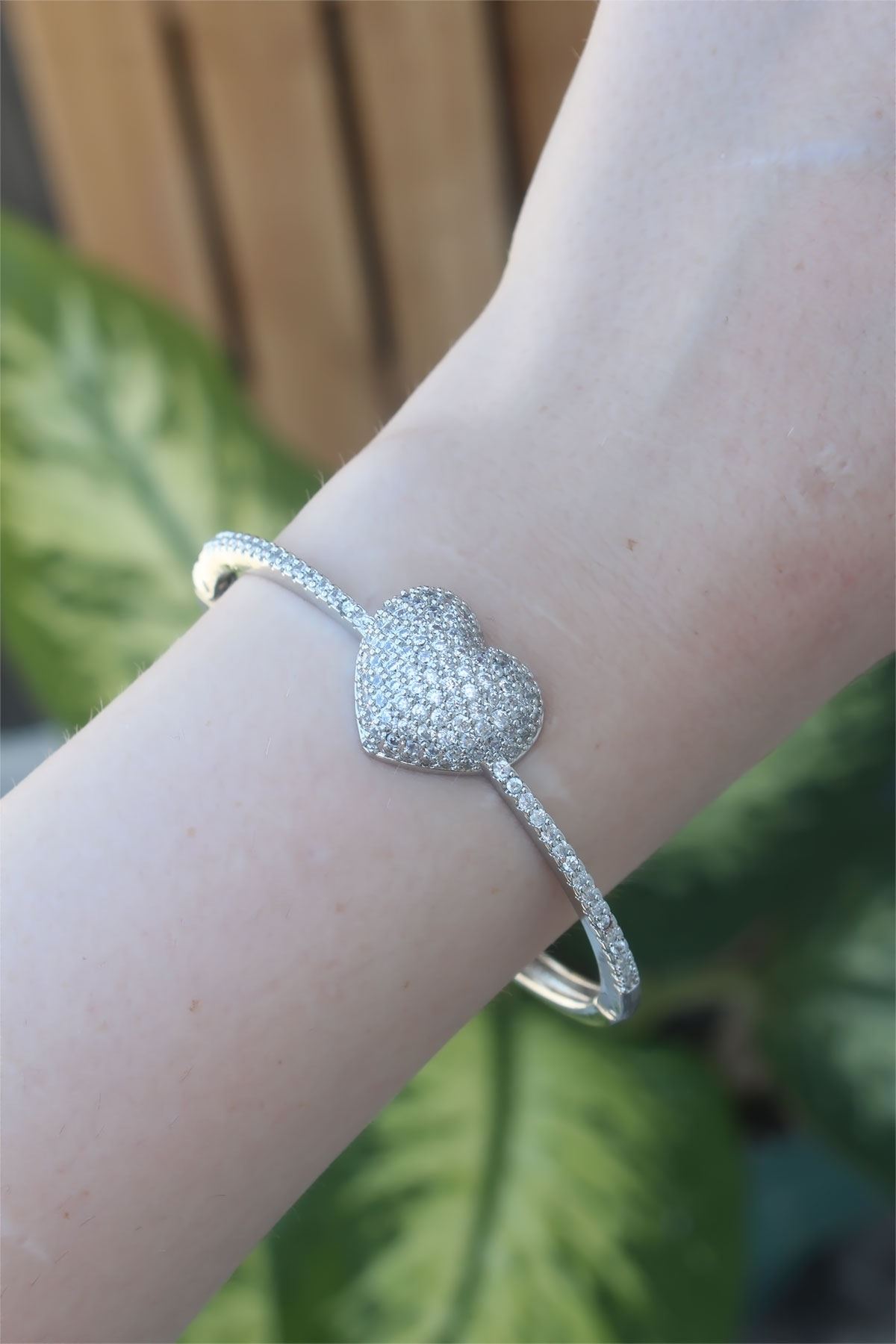 Vip Seri Pirinç Zirkon Taşlı Gümüş Renk Kalp Model Kelepçe - TJ-BB6082