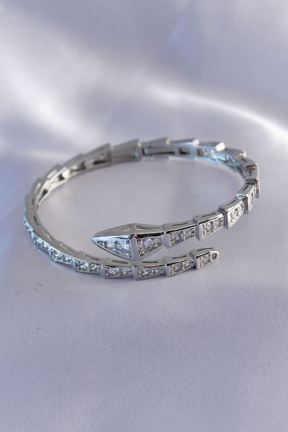 VIP Seri Yılan Model Gümüş Renk Kadın Kelepçe Bileklik - TJ-BB5488