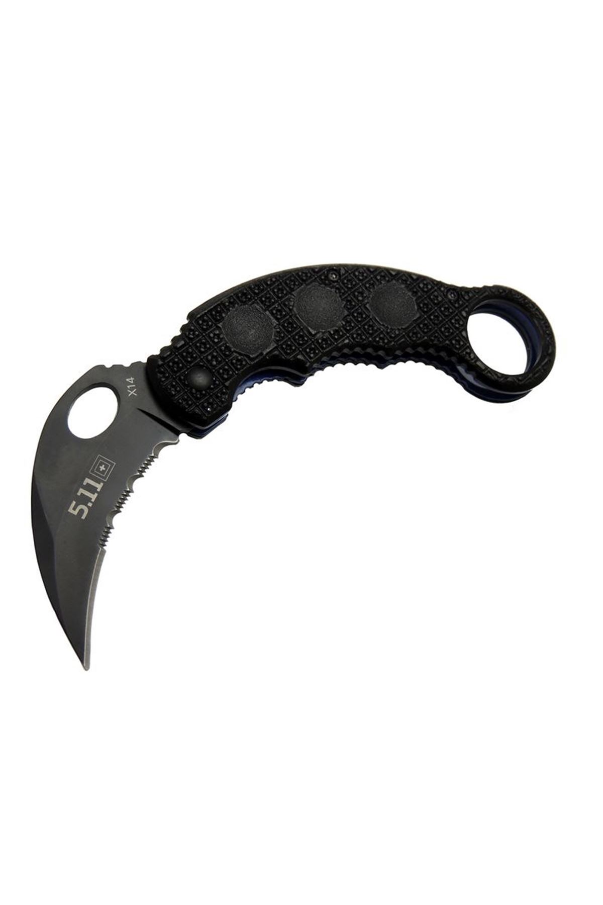 X14 5.11 Siyah Karambit Koleksiyon Çakı, taktik ve koleksiyon amaçlı tasarlanmış, dikkat çekici bir görünüme sahip bir bıçaktır. Karambit tarzı tasarımıyla bilinen bu çakı, hem estetik hem de işlevsel özellikleriyle öne çıkar.