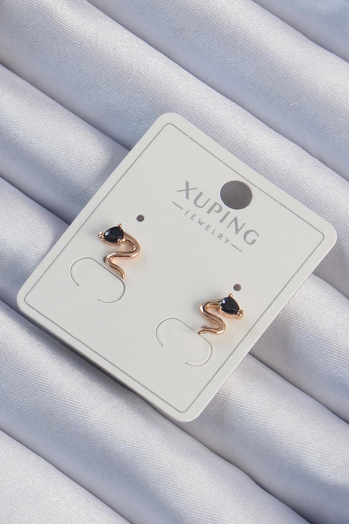 Xuping Rose Renk Siyah Zirkon Taşlı Kıvrımlı Küpe - TJ-BKP9443