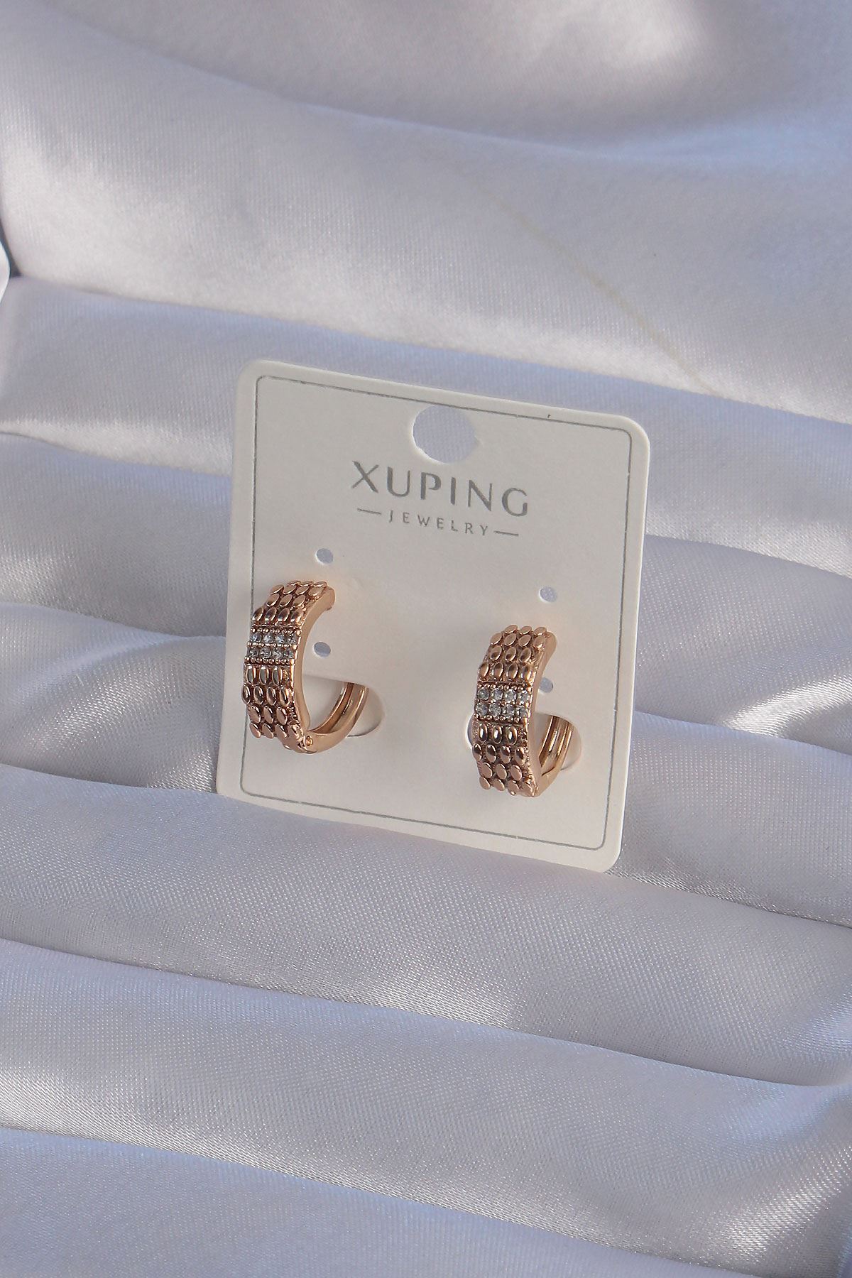 XUPİNG Rose Renk Zirkon Taşlı İşlemeli Halka Küpe - TJ-BKP9362