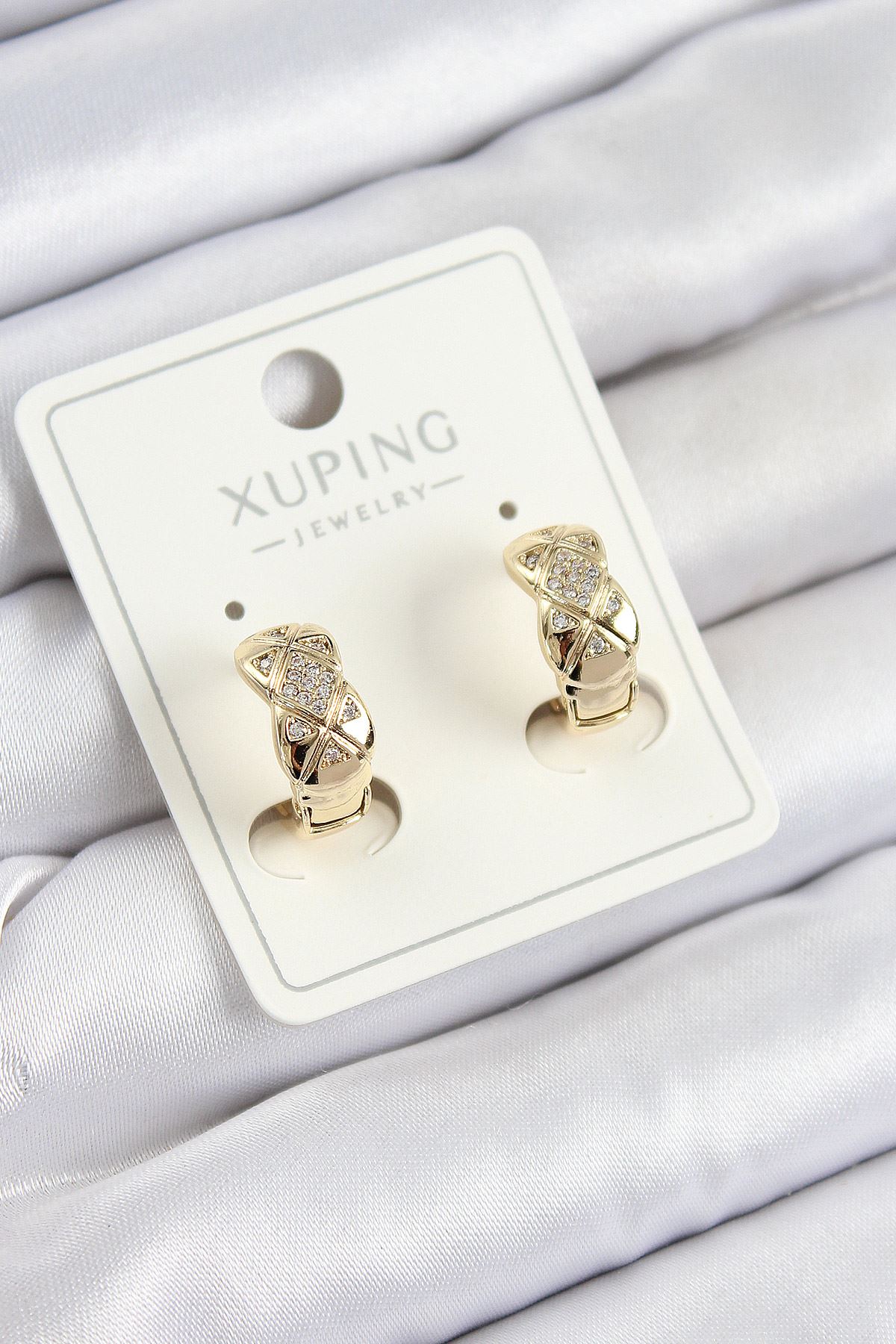 Xuping Zirkon Taşlı Geometrik Desenli Halka Model Gold Renk Kadın Küpe - TJ-BKP10850