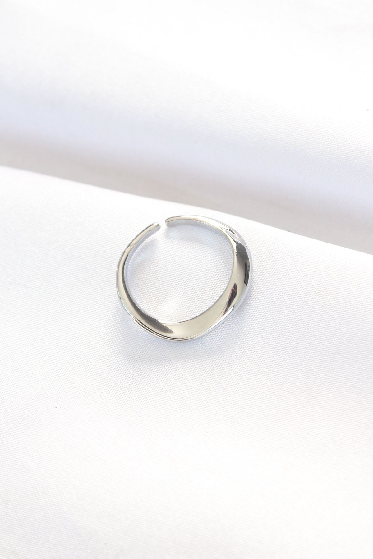 Yassı Silver Renk Ayarlanabilir Yüzük - TJ-BYK3100