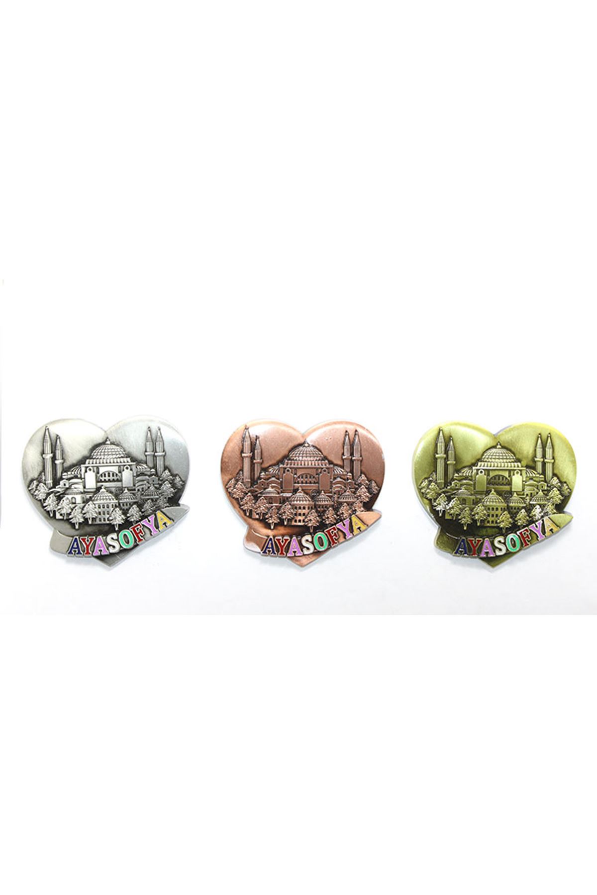 YÖRESEL AYASOFYA MAGNET MODEL 2 Ürün ÖzellikleriYöresel Ayasofya Magnet Model 2, İstanbul’un tarihi simgelerinden Ayasofya'yı kalp tasarımı ile zarif bir şekilde sergileyen şık bir dekoratif üründür. Dayanıklı metal malzeme ile üretilmiş olup, uzun ömürlü kullanım sunar. Kalp şeklindeki tasarım, İstanbul’a olan sevginizi simgelerken, Ayasofya figürü ile de İstanbul’un kültürel mirasını estetik bir biçimde yansıtarak hem dekoratif hem de anlamlı bir hediye seçeneği sunar. Mıknatıslı özellik sayesinde, bu magnet buzdolabı veya metal yüzeylere kolayca yapışır.Paket İçeriği1 adet Yöresel Ayasofya Magnet Model 2