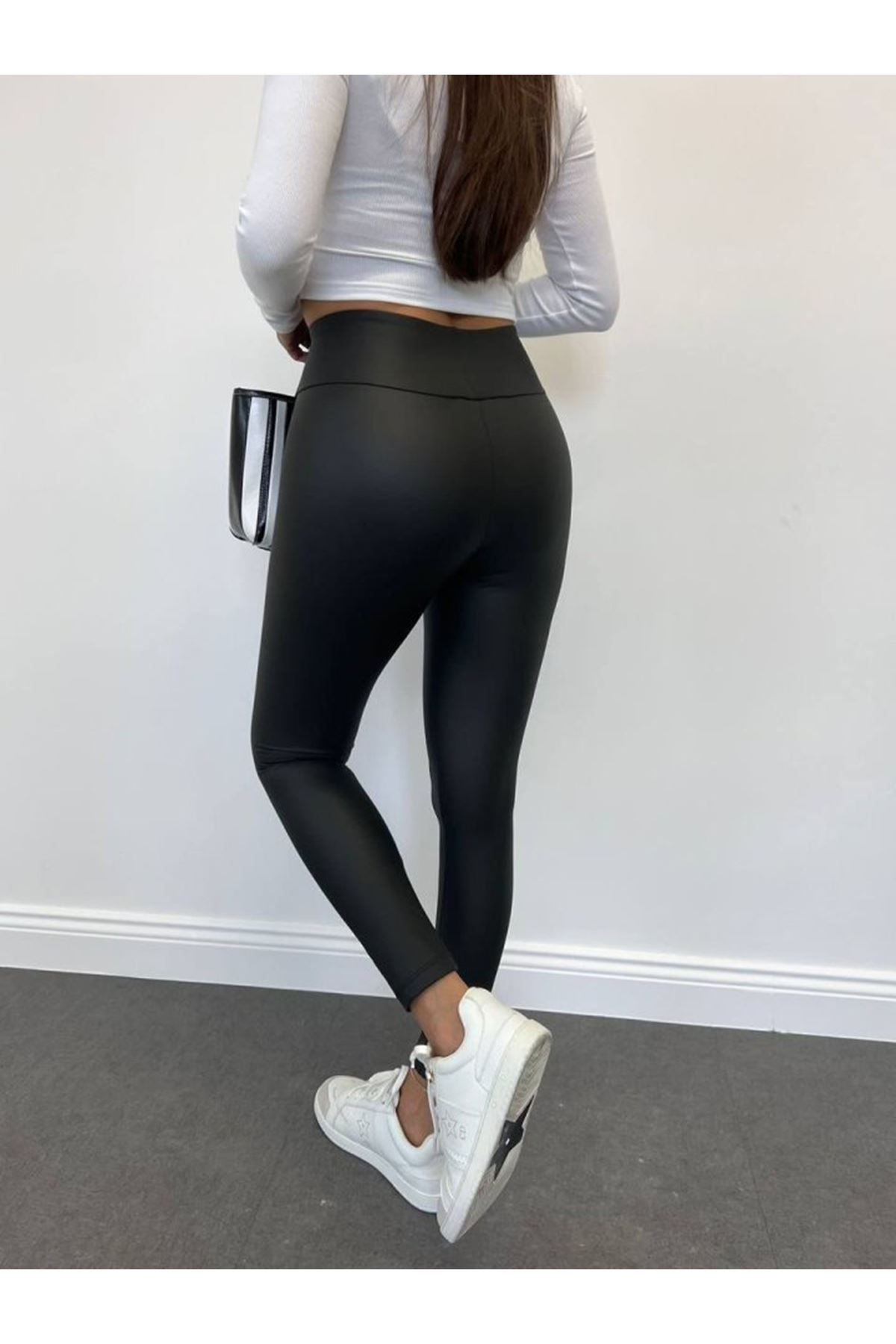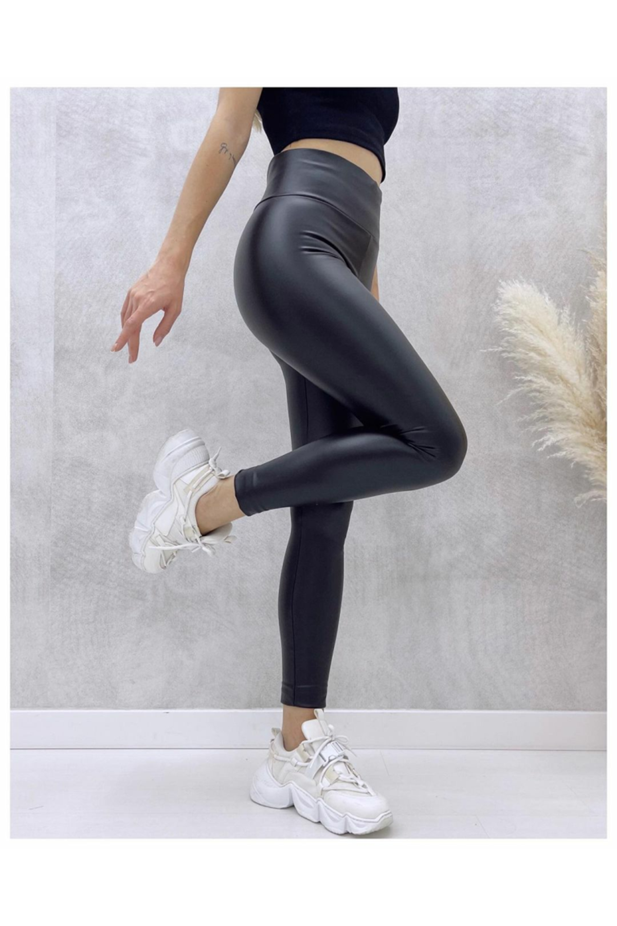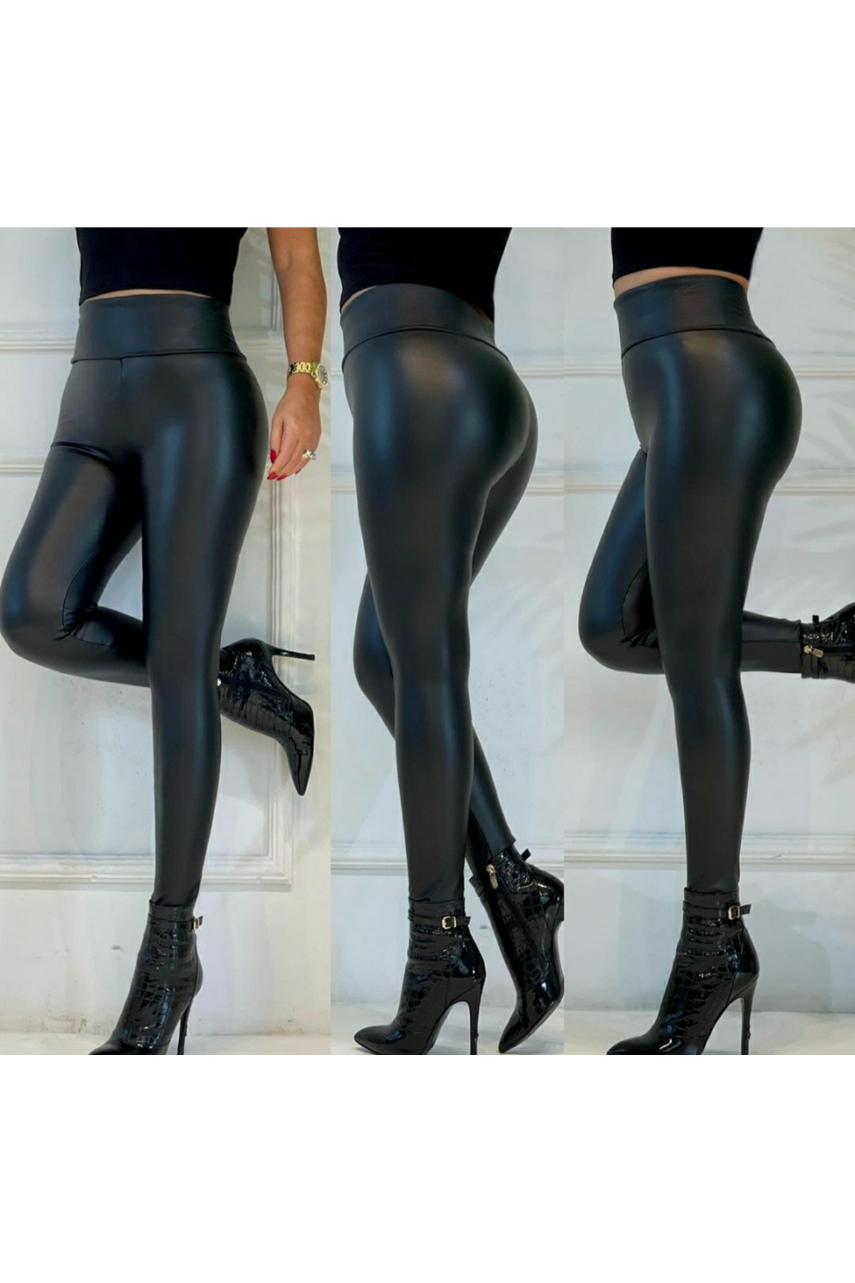 Yüksek Bel Toparlayıcı İçi Şardonlu Deri Tayt