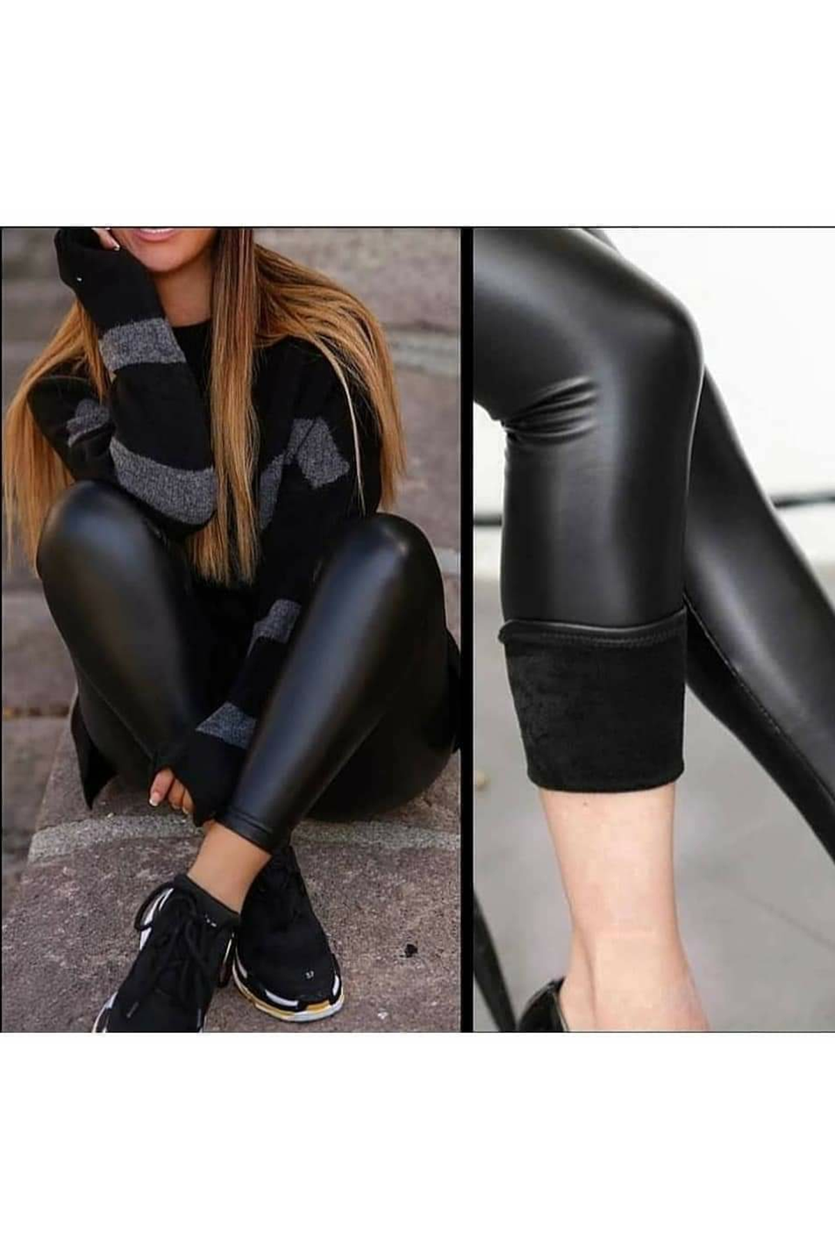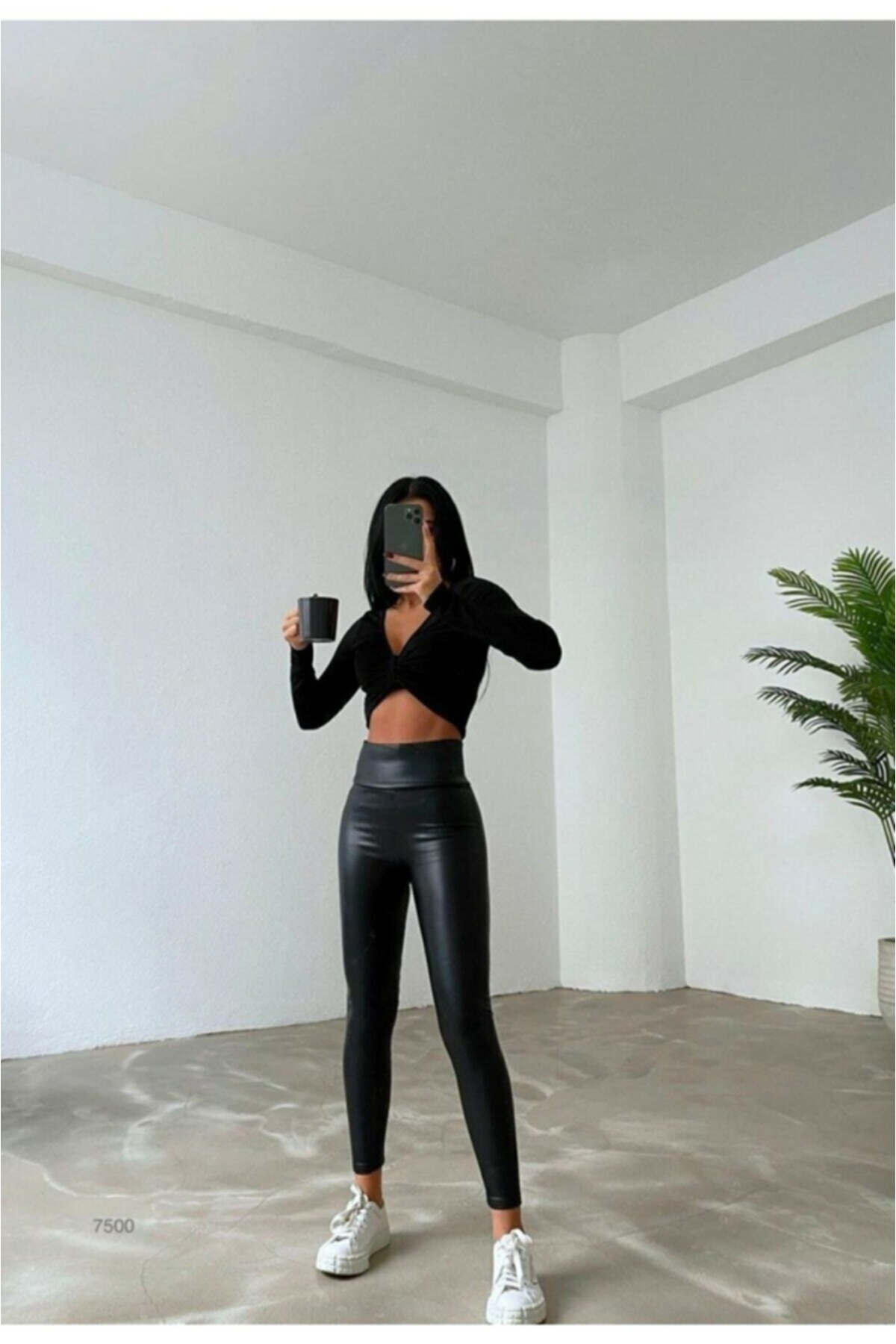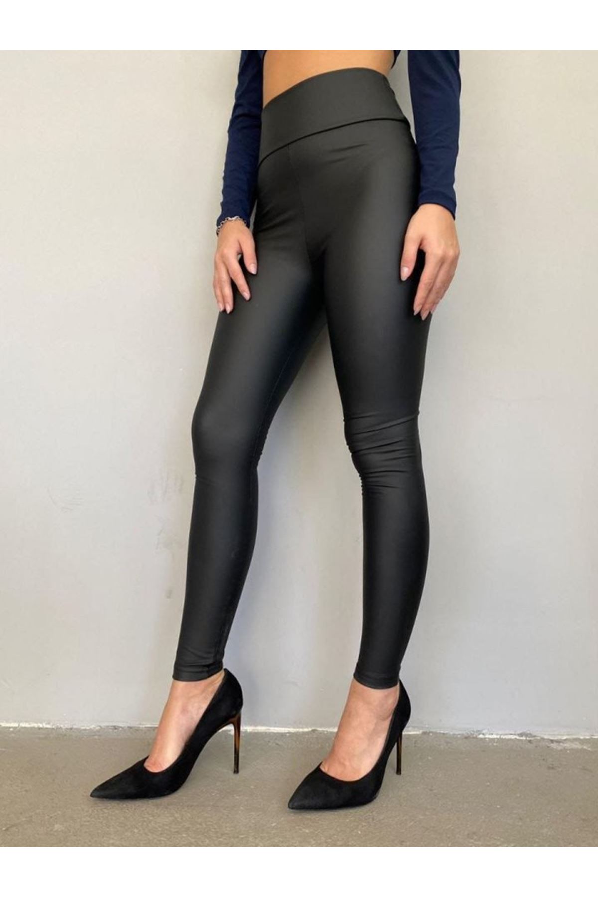 Yüksek Bel Toparlayıcı İçi Şardonlu Deri Tayt