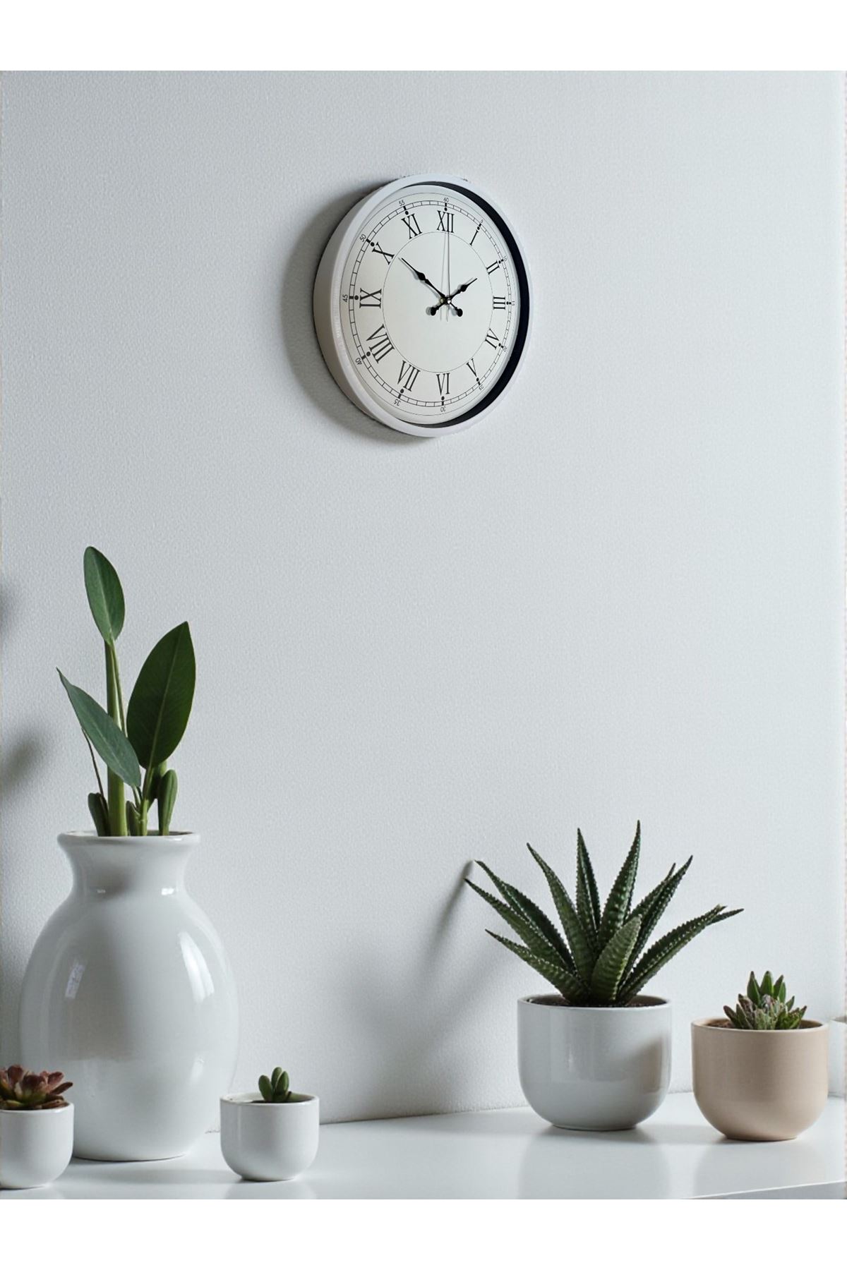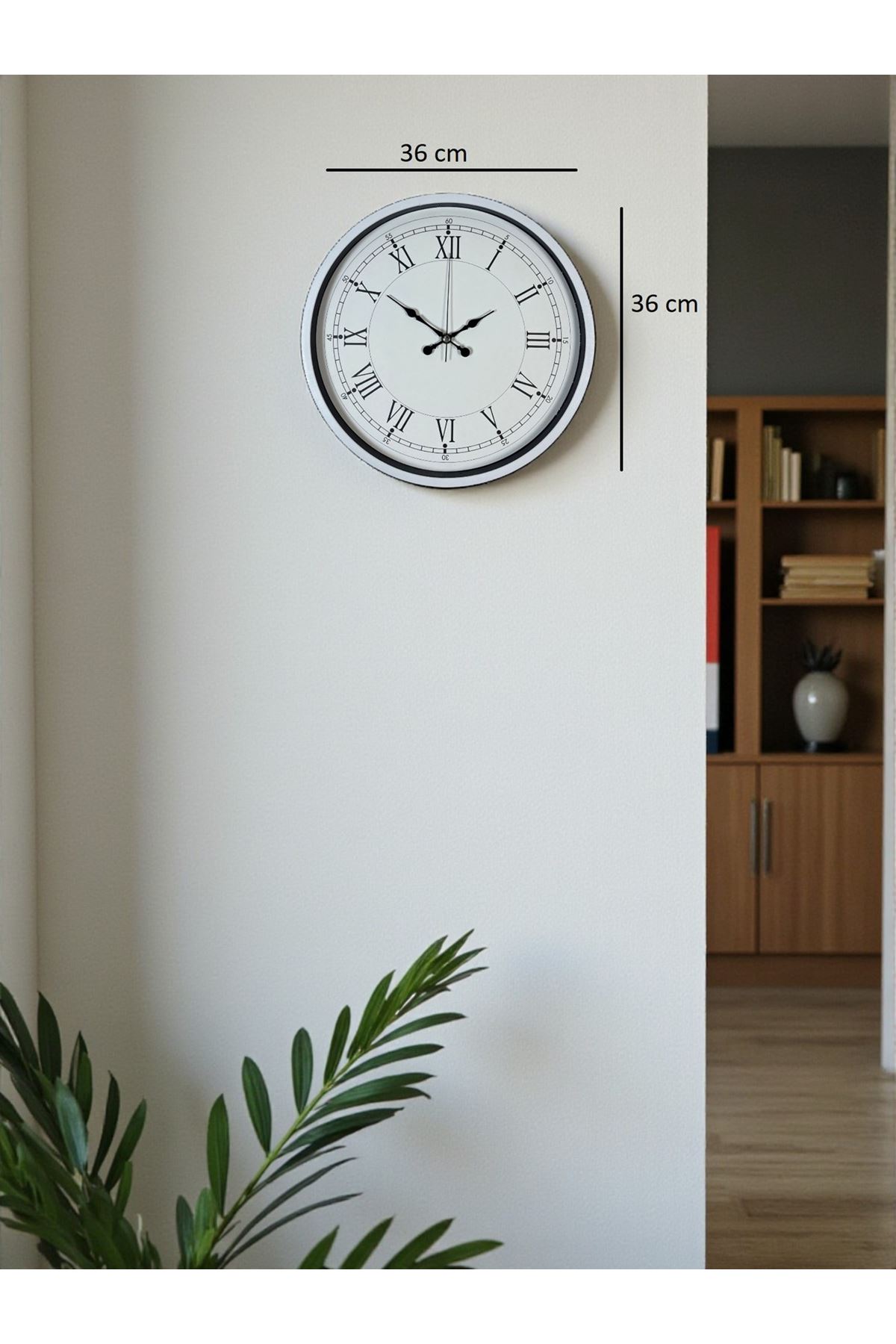 Zamansız şıklığı sevenler için tasarlanan 36 cm Beyaz Duvar Saati, ferah görünümü ve klasik detaylarıyla her dekorasyona kolayca uyum sağlayan estetik bir modeldir. Minimalist beyaz çerçevesi ve sade kadranı, bulunduğu ortama hem aydınlık hem de zarif bir hava katar. Büyük ve belirgin Roma rakamları sayesinde saati uzak mesafeden dahi kolayca okuyabilirsiniz.