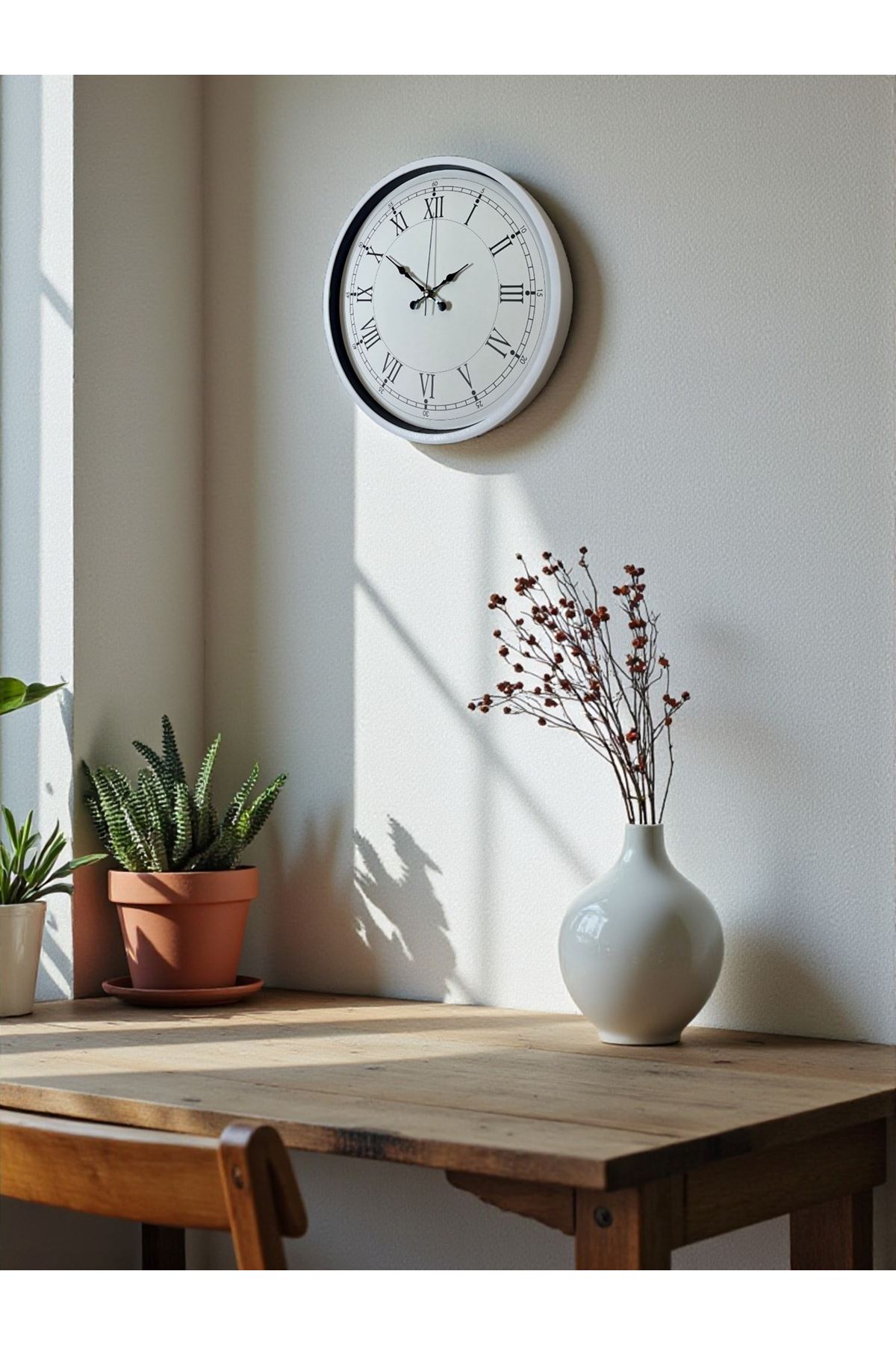 Hafif plastik kasası ile montajı kolaydır ve duvarda çok sağlam durur. Beyaz çerçeve; modern, minimalist, İskandinav (Scandinavian), vintage ve klasik tüm dekor tarzlarıyla doğal bir uyum yakalar. Evlerden ofislere, kafe ve butiklerden iş yerlerine kadar pek çok alanda şık bir tamamlayıcı dekoratif ürün olarak tercih edilir.