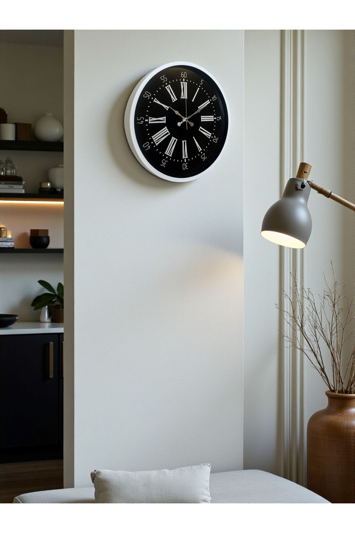 Minimal ve modern çizgilerin birleştiği 36 cm Beyaz Duvar Saati, sade fakat şık tasarımıyla bulunduğu alanlarda zarif bir estetik oluşturur. Beyaz çerçevenin siyah zeminle sağladığı güçlü kontrast, hem modern hem de klasik dekorasyon tarzlarına kusursuz şekilde uyum sağlar. Beyaz çerçeve, temiz ve ferah görünümü sayesinde her alanda şıklığı öne çıkarırken, siyah zemin ve beyaz Roman rakamları yüksek okuma kolaylığı sunar.