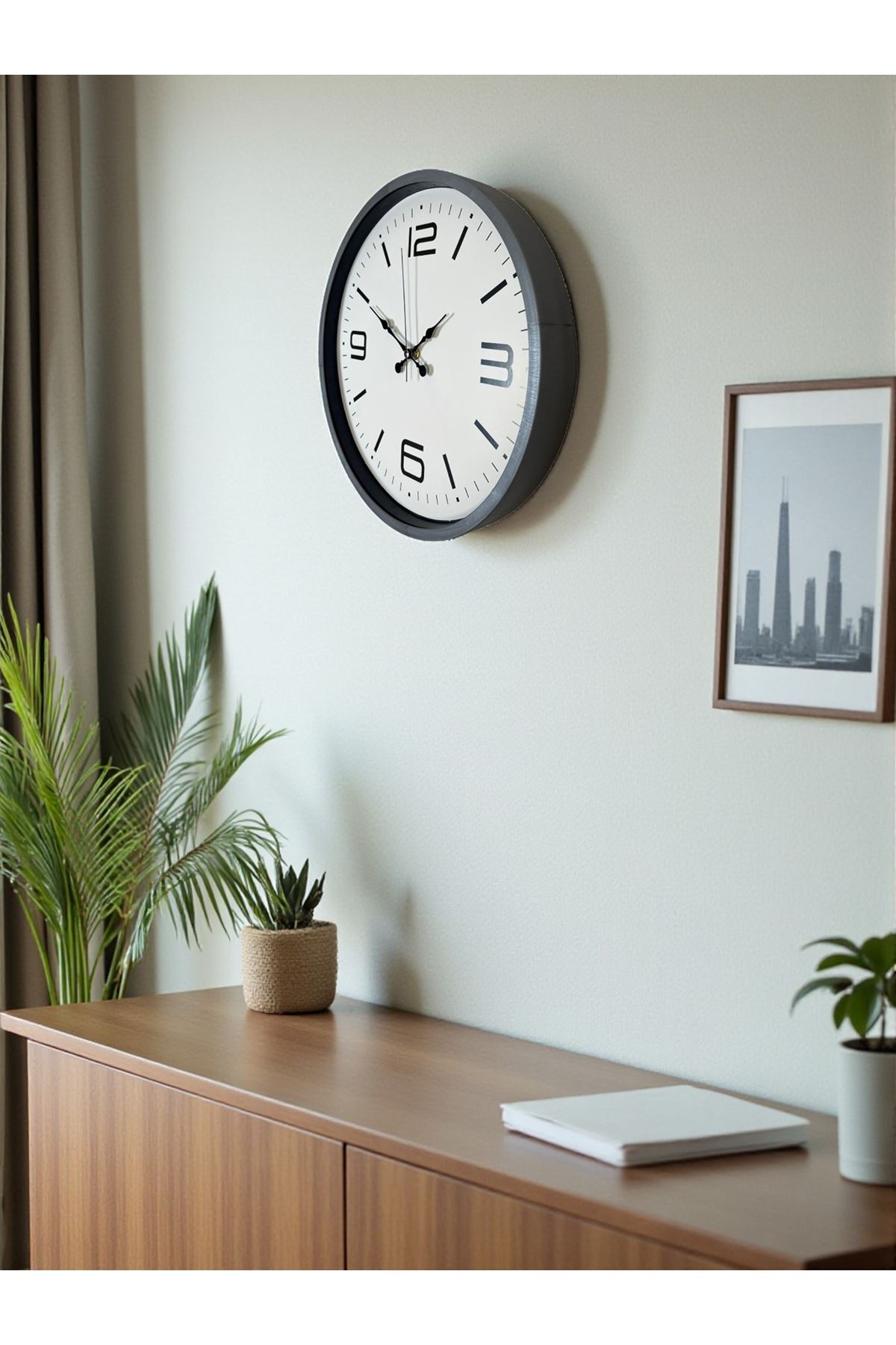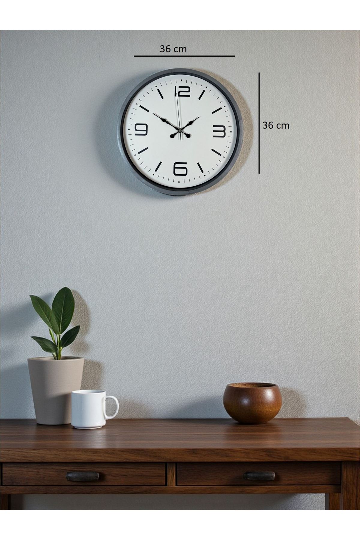 Modern ve minimalist çizgileri bir araya getiren bu 36 cm gri duvar saati, dekorasyonunda sadelik ve şıklığı bir arada görmek isteyen kullanıcılar için mükemmel bir tercihtir. Gri çerçevesi, endüstriyel, modern ve sade dekorasyonlarla kusursuz bir uyum sağlar. Büyük ve modern fontlu rakamları ile geniş beyaz kadranı, saatin uzağa yerleştirildiğinde bile rahatça okunabilmesine olanak tanır. Hem ev hem iş yerleri için ideal bir dekoratif tamamlayıcıdır.