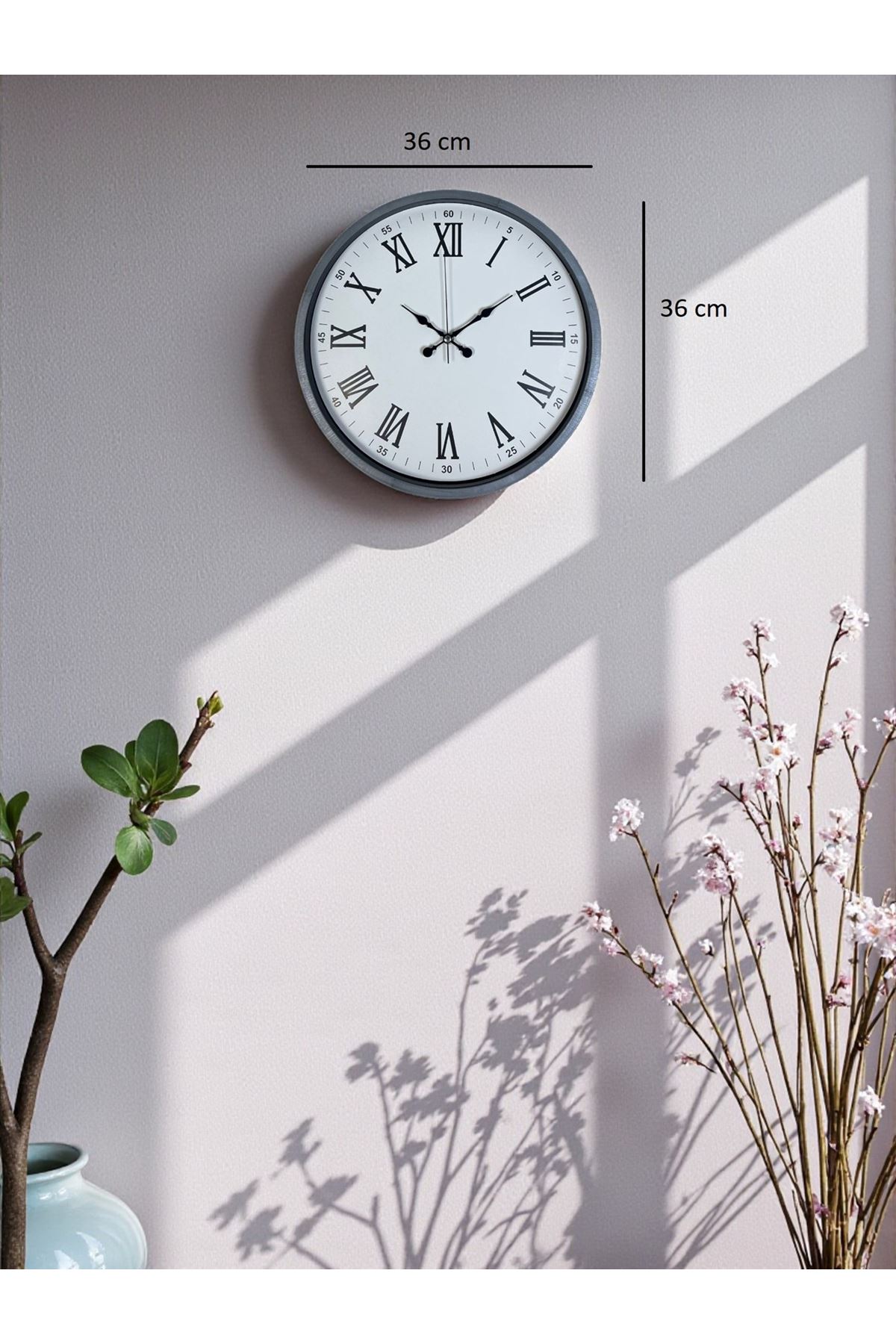 Ürün Açıklaması Modern çizgileri klasik zarafetle birleştiren bu 36 cm gri duvar saati, sade ve şık tasarımıyla ev ve iş yerlerinde dekoratif bir tamamlayıcı olarak öne çıkar. Saatin ön yüzeyi 2 mm kalınlığında gerçek cam ile kaplanmıştır. Gerçek cam, plastik camlara göre çok daha dayanıklı olup hem daha net bir görüntü sağlar hem de zamanla oluşabilecek sararma, toz tutma veya çizilme gibi sorunların önüne geçer. Ürünün premium görünümü, kullanılan bu gerçek cam malzeme sayesinde çok daha belirgin hale gelir. Beyaz kadran üzerine yerleştirilmiş büyük ve okunabilir Roma rakamları, saatin estetik görünümünü güçlendirirken uzak mesafeden bile kolayca okunabilirlik sunar. İnce ve zarif tasarımıyla dikkat çeken akrep-yelkovan takımı, gri çerçeveyle birlikte kusursuz bir uyum oluşturur. Sessiz akan saniye (akar saniye) mekanizması sayesinde hiçbir tıkırtı sesi çıkarmaz; yatak odası, çalışma odası, ofis gibi sessiz ortamlarda sorunsuz kullanım sağlar. Gri çerçeve rengi, modern dekorasyonlarla mükemmel uyum içindedir ve minimalist bir görünüm sunar. Kaliteli plastik kasası hafif yapıdadır ve duvara montajı kolaydır. Hem ev hem de ticari alanlarda rahatlıkla kullanılabilecek şık ve fonksiyonel bir modeldir. Ürün Özellikleri Çap: 36 cm Renk: Gri çerçeve Ön Yüz: 2 mm kalınlığında gerçek cam (dayanıklı ve net görünüm) Kadran: Beyaz zemin – siyah Roma rakamlı klasik tasarım Mekanizma: Sessiz akan saniye – tıkırtı yapmaz Malzeme: Kaliteli dayanıklı plastik kasa Enerji: 1 adet AA kalem pil ile çalışır Montaj: Askı aparatı sayesinde kolay duvar montajı Ağırlık: Hafif ve duvara yük bindirmeyen yapı Kullanım Alanları: Salon Ofis ve çalışma odaları Koridor ve giriş alanları Mutfak Yatak odası Cafe, butik, restoran Otel odaları ve lobiler