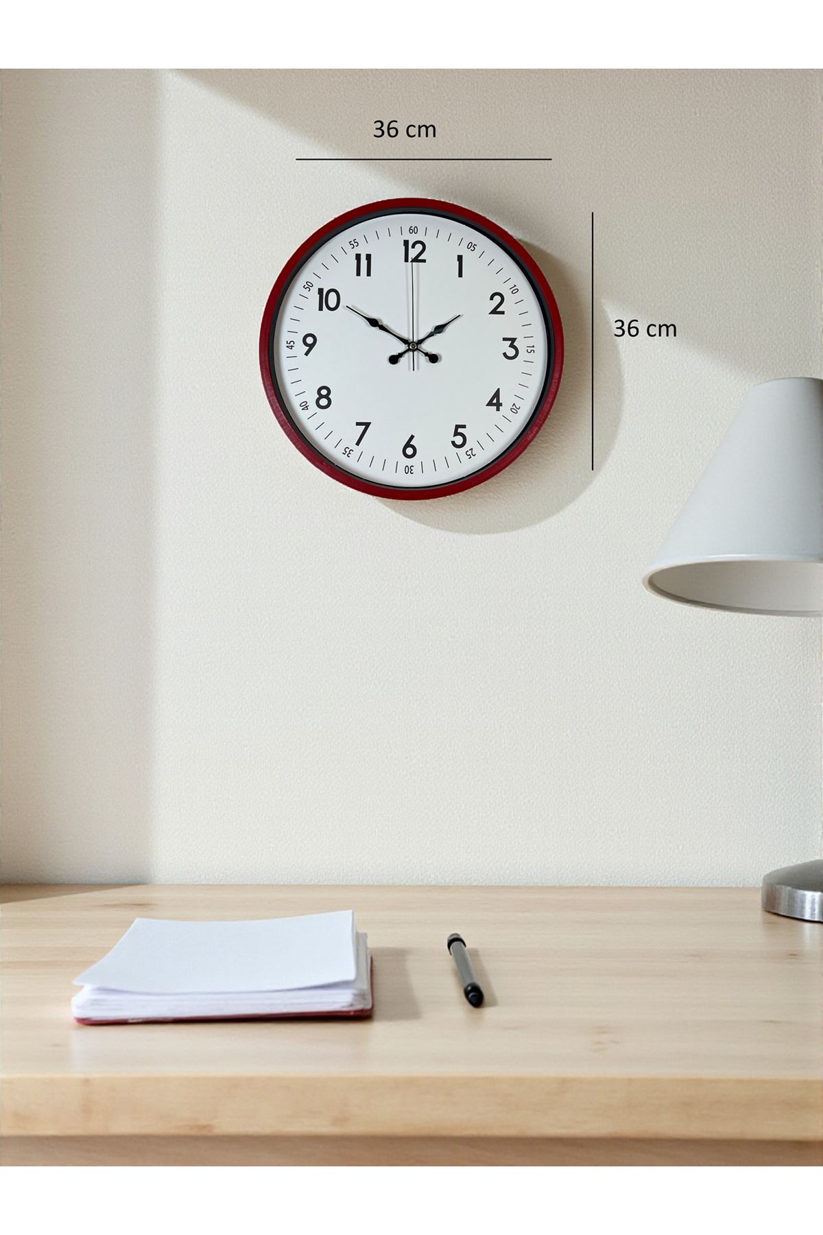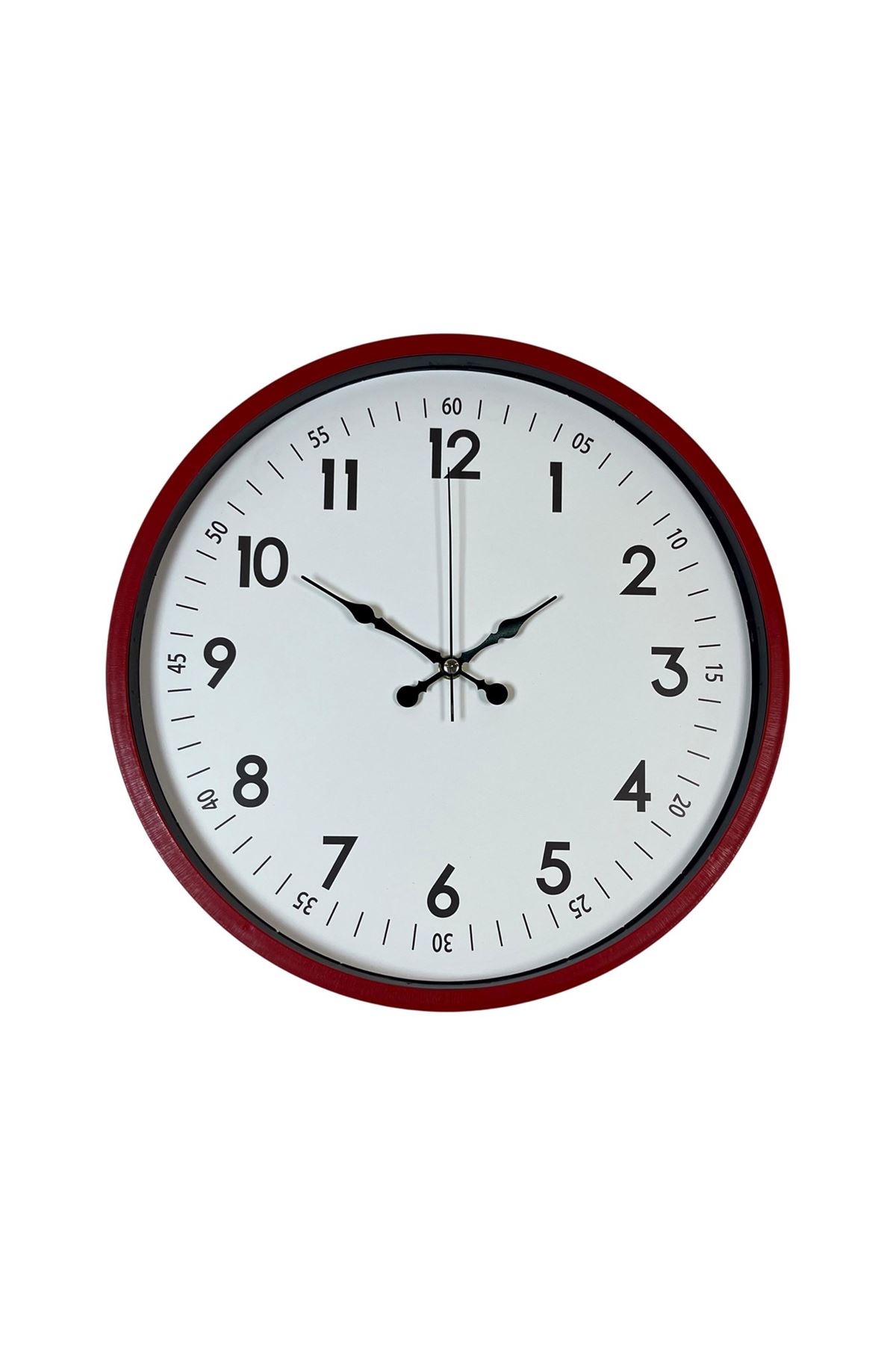 Canlı kırmızı çerçevesiyle dikkat çeken bu 36 cm duvar saati, bulunduğu ortama enerji, dinamizm ve modern bir stil katan dekoratif bir tasarımdır. Beyaz zeminli geniş kadranı, belirgin siyah rakamları ve detaylı dakika göstergeleri (05, 10, 15...) ile saati uzaktan bile kolayca okuyabilmenizi sağlar. Şık, renkli ve fonksiyonel bir duvar saati arayanlar için mükemmel bir tercihtir.