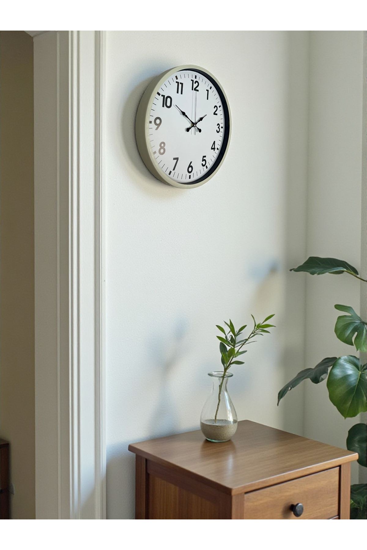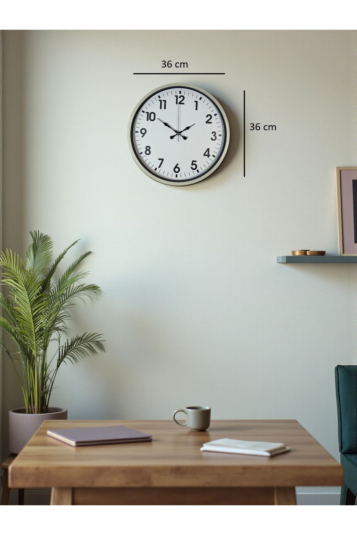 Zamansız tasarımı ve sıcak tonlardaki krem rengi çerçevesiyle bu 36 cm duvar saati, ev ve ofis dekorasyonuna doğal, şık ve sade bir dokunuş katmak isteyenler için mükemmel bir seçenektir. Rahat okunabilen büyük siyah rakamları ve temiz beyaz zeminli kadranı ile fonksiyonel kullanım sunarken, modern çizgileriyle bulunduğu her ortamda estetik bir görünüm oluşturur.