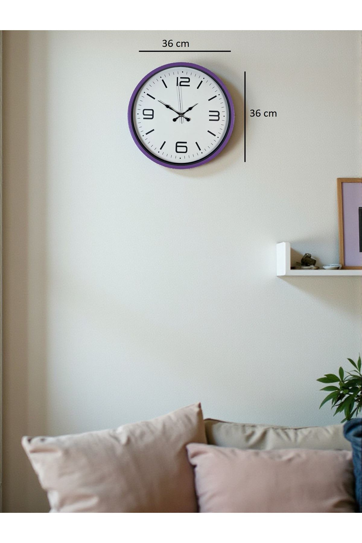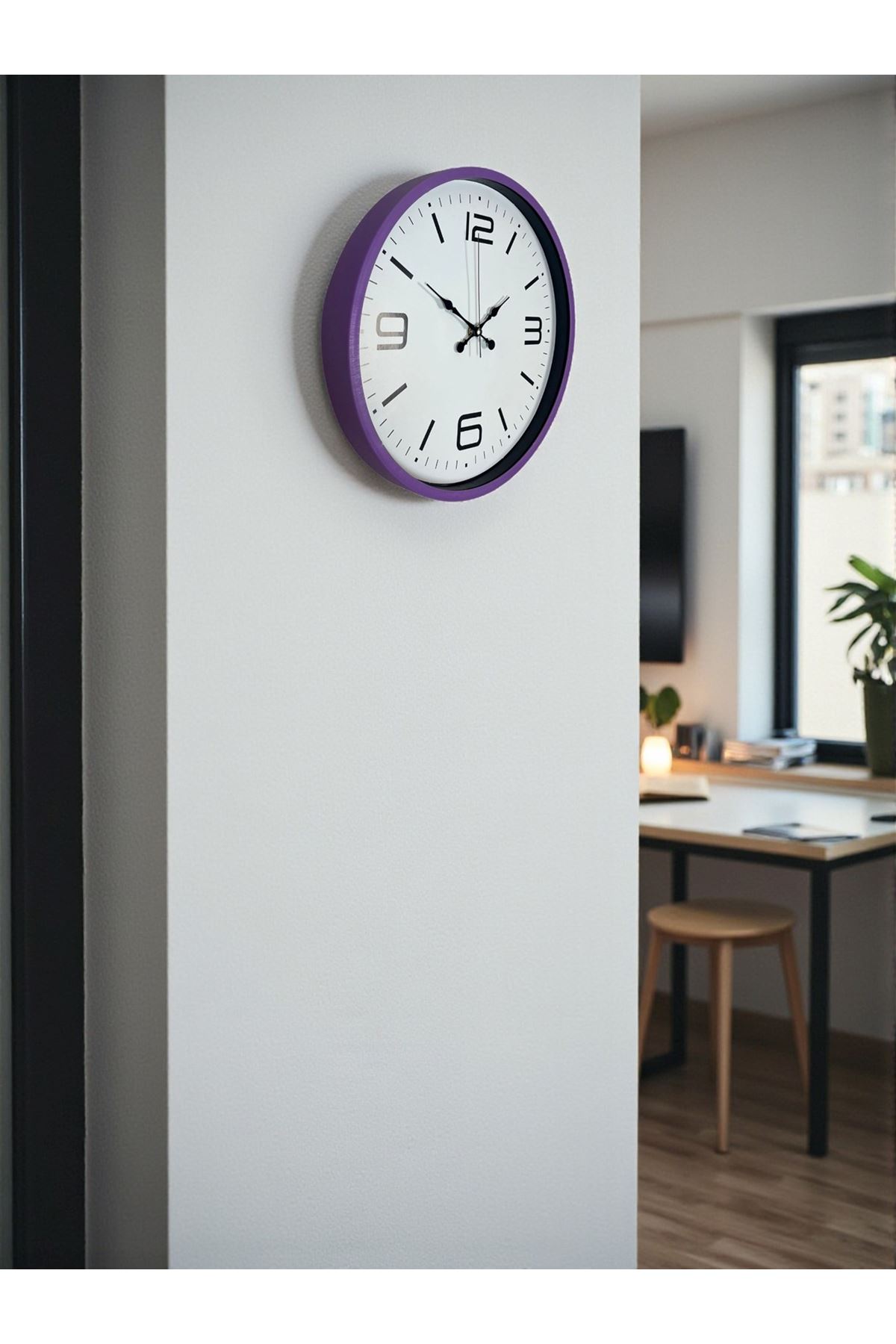 Geniş ve sade kadranı, büyük rakamları ve okunabilir çizgisel tasarımı sayesinde uzak mesafeden bile saati rahatça görmenizi sağlar. Sessiz akan saniye mekanizması, rahatsız edici tıkırtı sesi oluşturmaz; yatak odası, çalışma odası ve ofis gibi sessizlik gerektiren alanlar için idealdir. Mor çerçevesi ise dekorasyonda farklılık yaratmak isteyen kullanıcılar için modern ve güçlü bir tarz sunar.